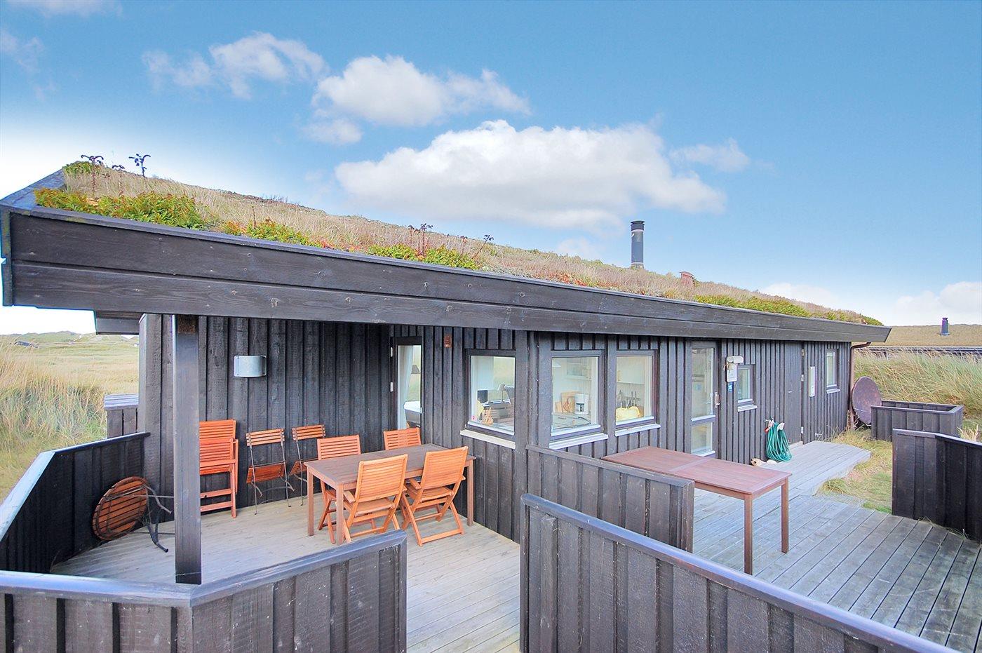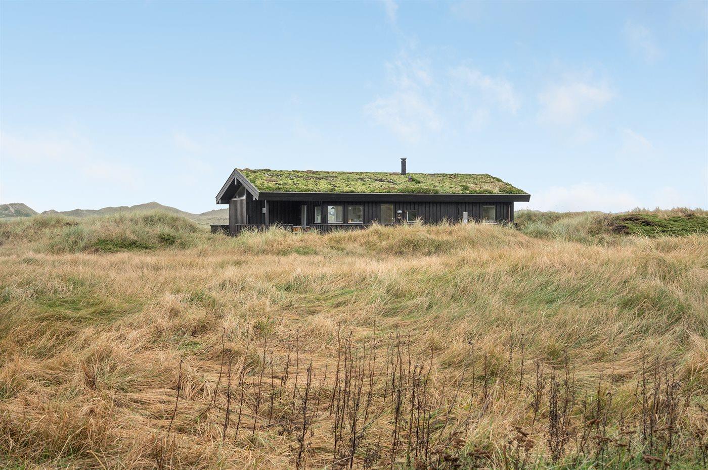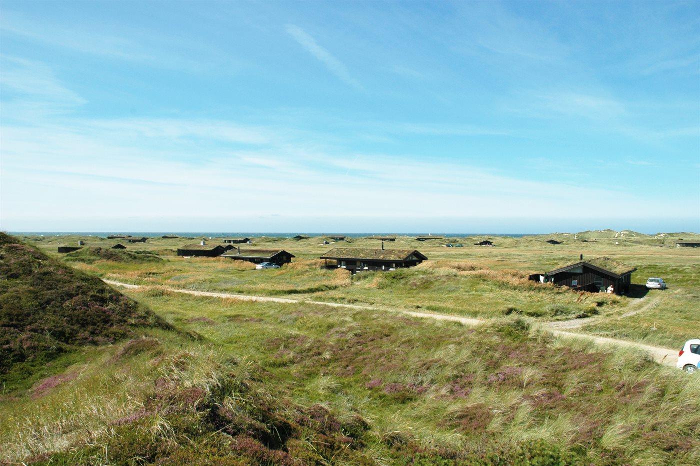 Tilbagetrukket på en stor, let kuperet grund i smukke omgivelser, ligger dette sommerhus med udsigt til et stort, fredet område med lyng og klitter. Især fra opholdsstuen kan denne fantastisk udsigt nydes. Huset ligger kun få minutters gang fra Vesterhavet, og i området findes gode aktivitetsmuligheder som f.eks. badeland og golfbane.