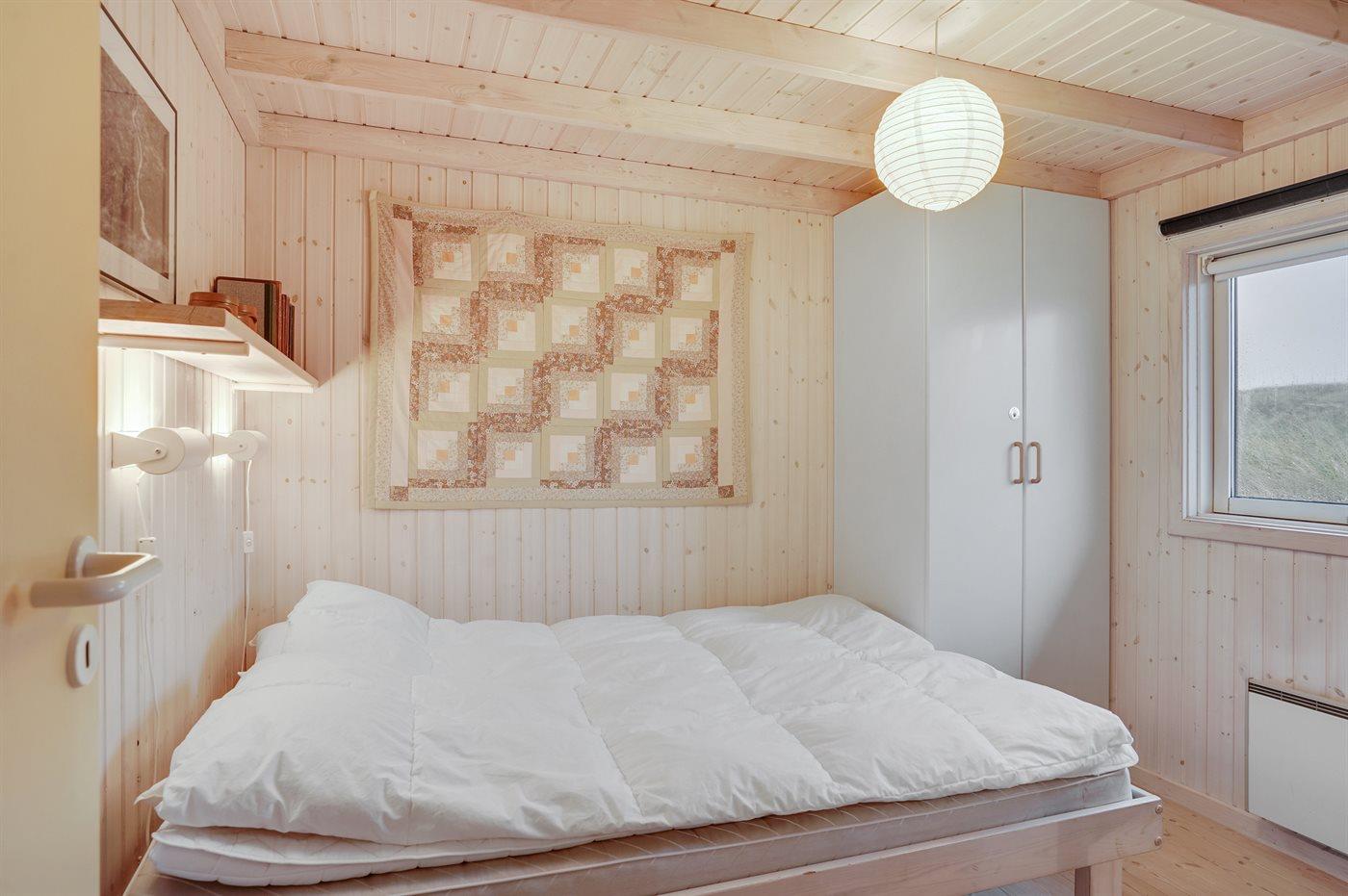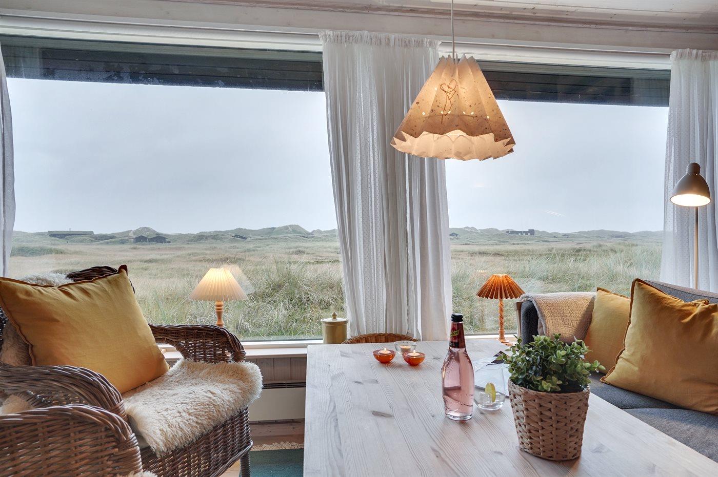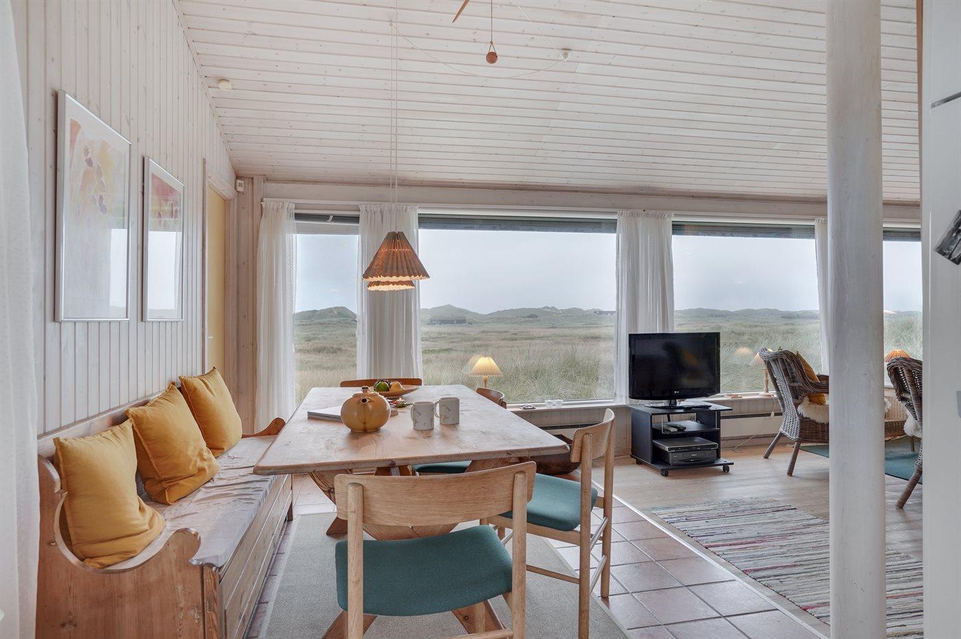 Tilbagetrukket på en stor, let kuperet grund i smukke omgivelser, ligger dette sommerhus med udsigt til et stort, fredet område med lyng og klitter. Især fra opholdsstuen kan denne fantastisk udsigt nydes. Huset ligger kun få minutters gang fra Vesterhavet, og i området findes gode aktivitetsmuligheder som f.eks. badeland og golfbane.