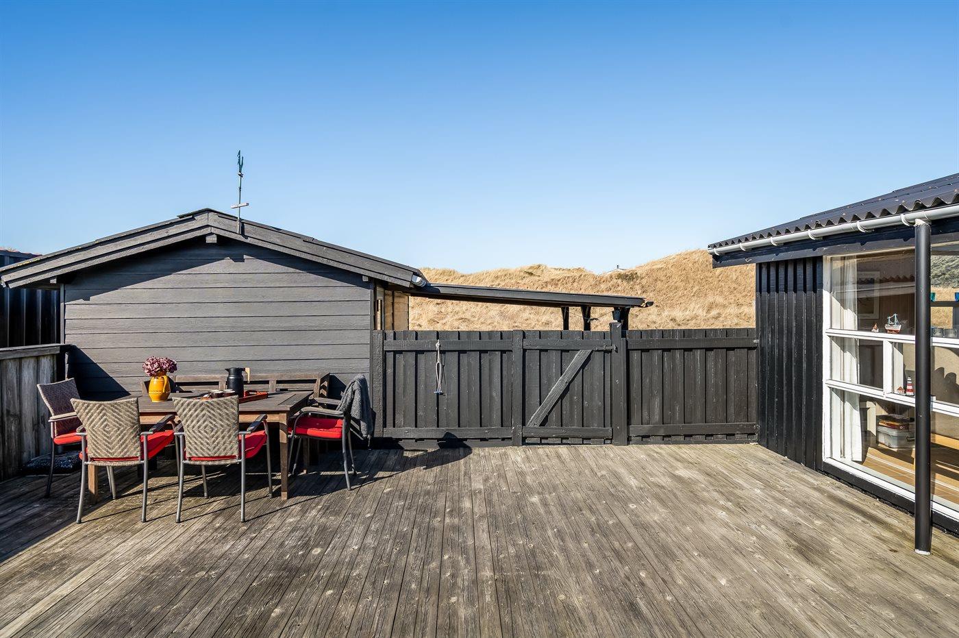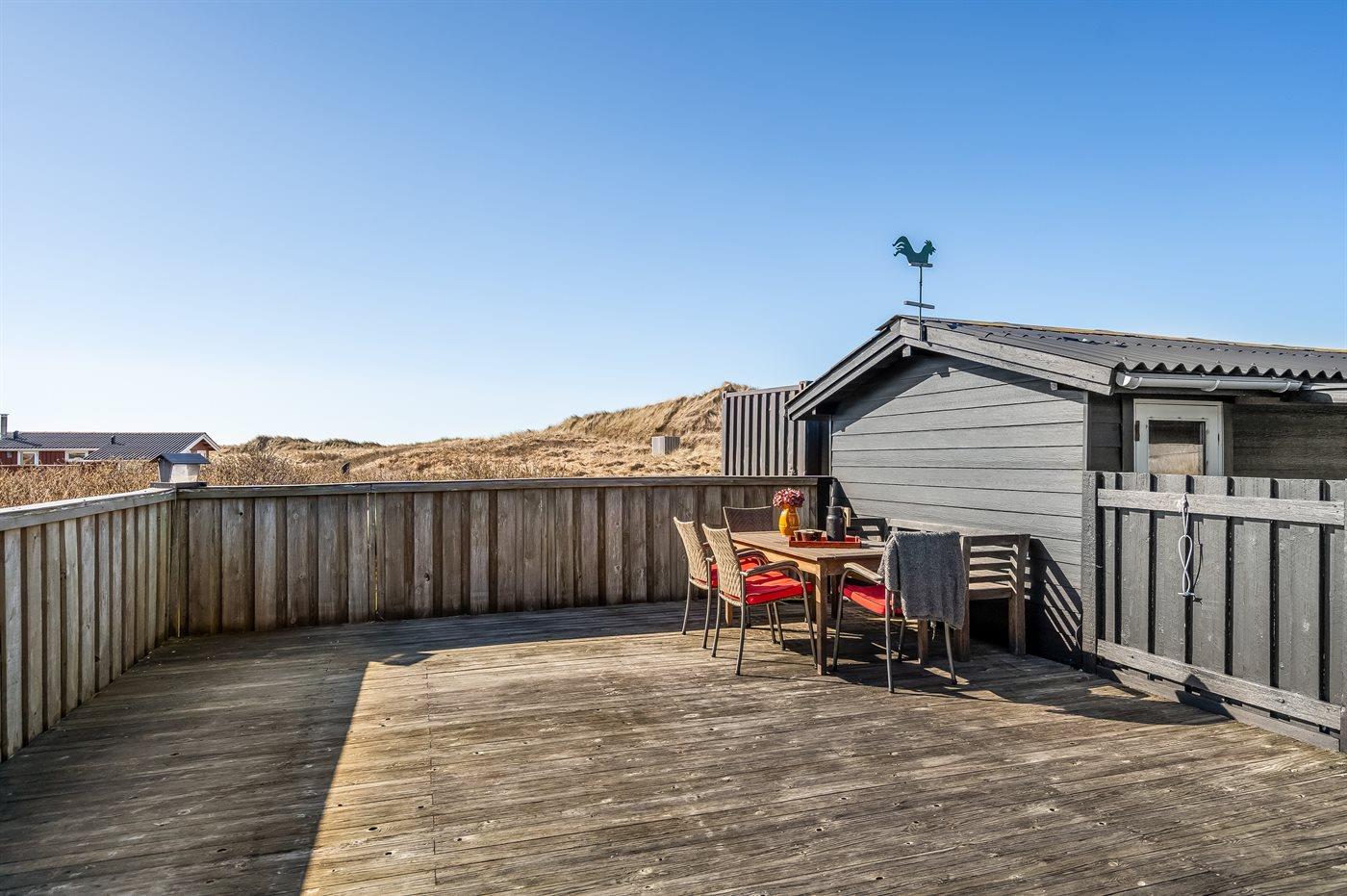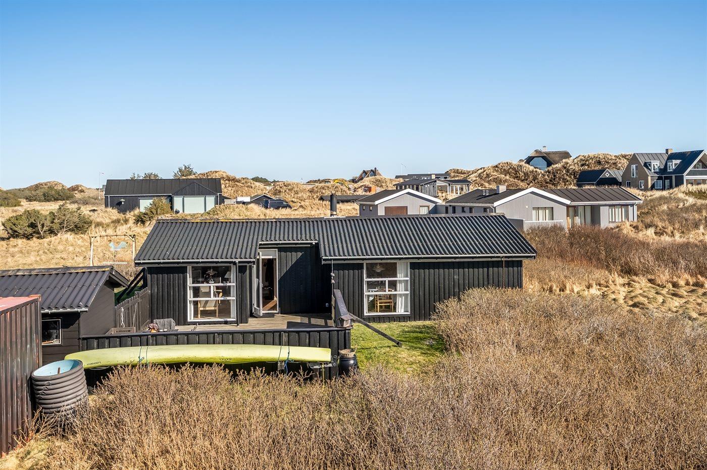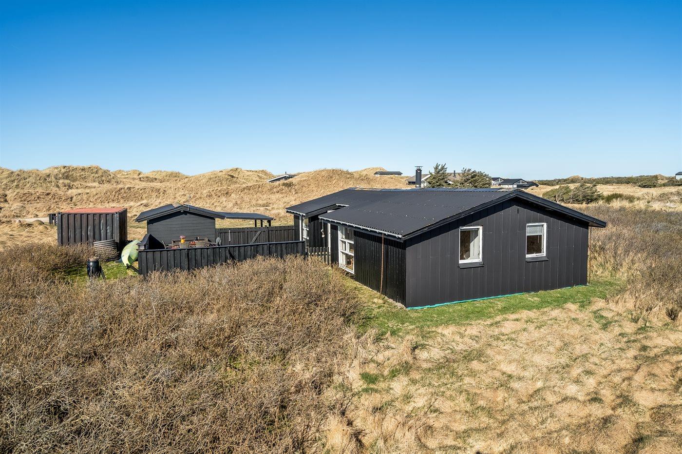 Dette hyggelige og charmerende sommerhus ligger på en stor klitgrund kun 150 meter fra den brede sandstrand og det brusende Vesterhav. Med sin perfekte beliggenhed er det ideelt for dig, der søger en afslappende ferie i naturskønne omgivelser.