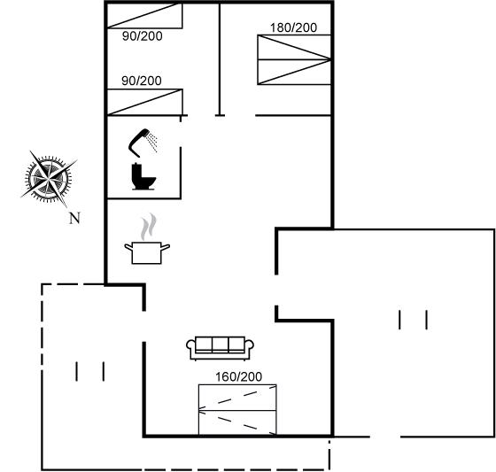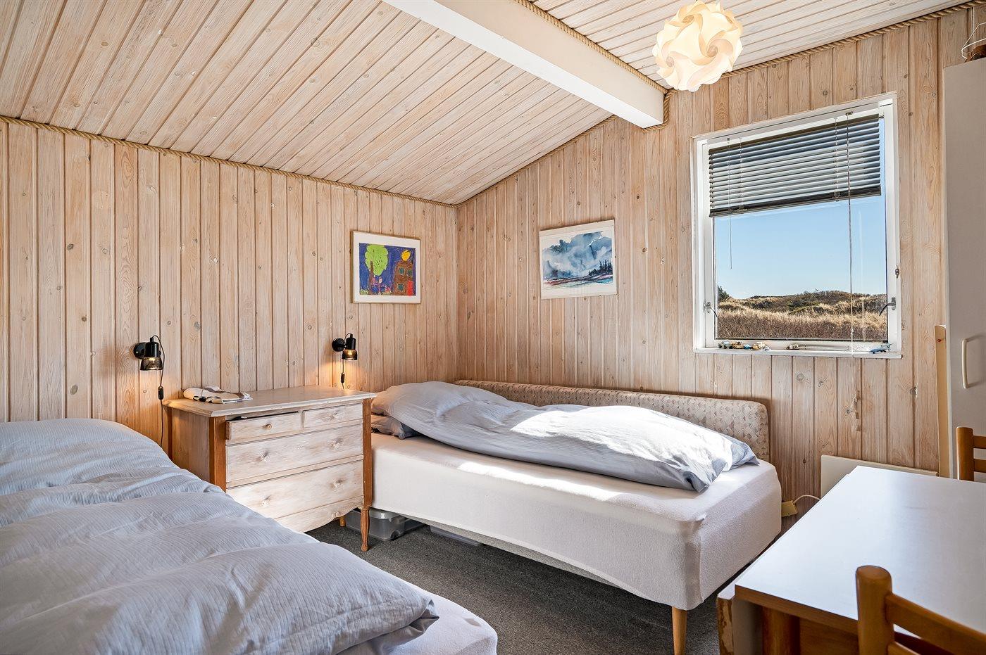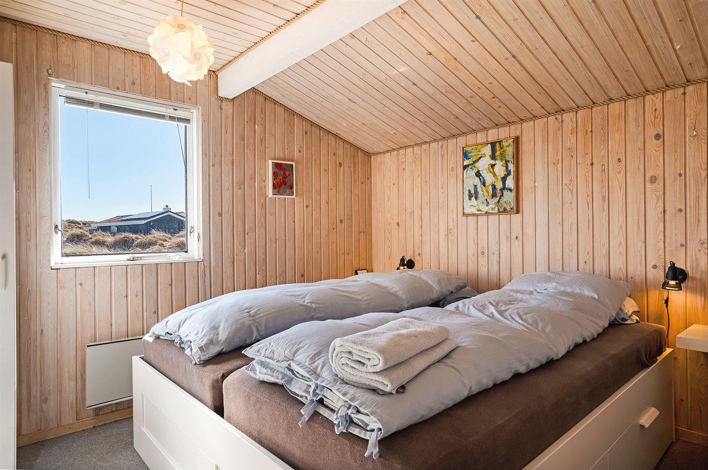 Der er i alt 2 soveværelser. Sovepladserne fordeler sig på: 2 sovepladser i dobbeltseng. 2 sovepladser i enkeltsenge. 2 sovepladser i sovesofa (dobbelt). 2 af disse sovepladser befinder sig i stuen.