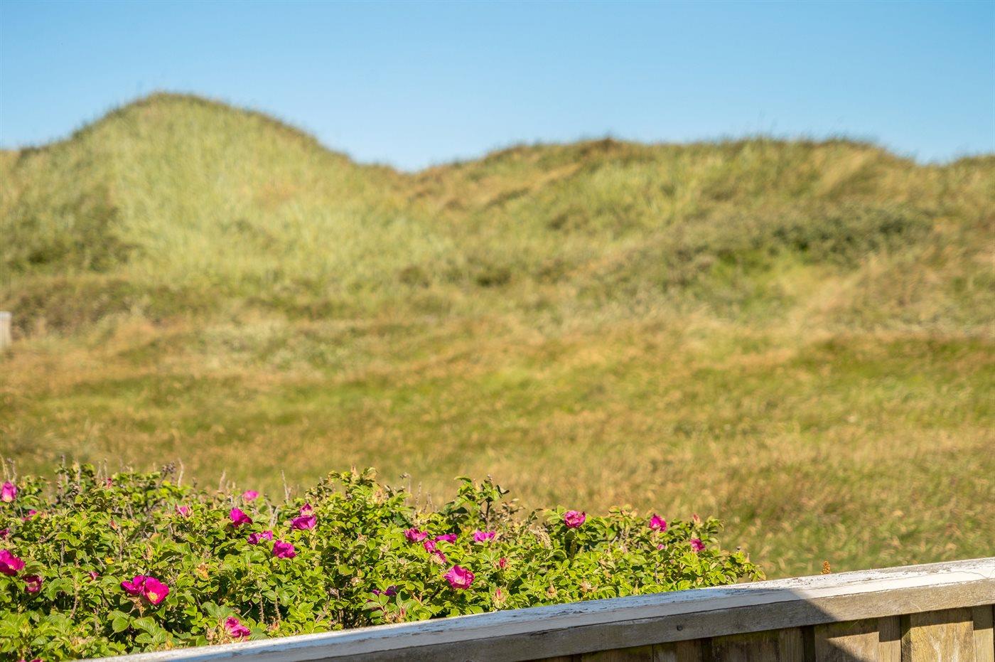 Ferieboligen er beliggende på en 2500 m² stor klitgrund. Der er 150 m til havet. Nærmeste forretning er beliggende i en afstand af 6000 m. Der er en golfbane i en afstand af 6000 m. Til ferieboligen hører åbent terrasseareal. Udendørs bruser. Parkering ved ferieboligen.