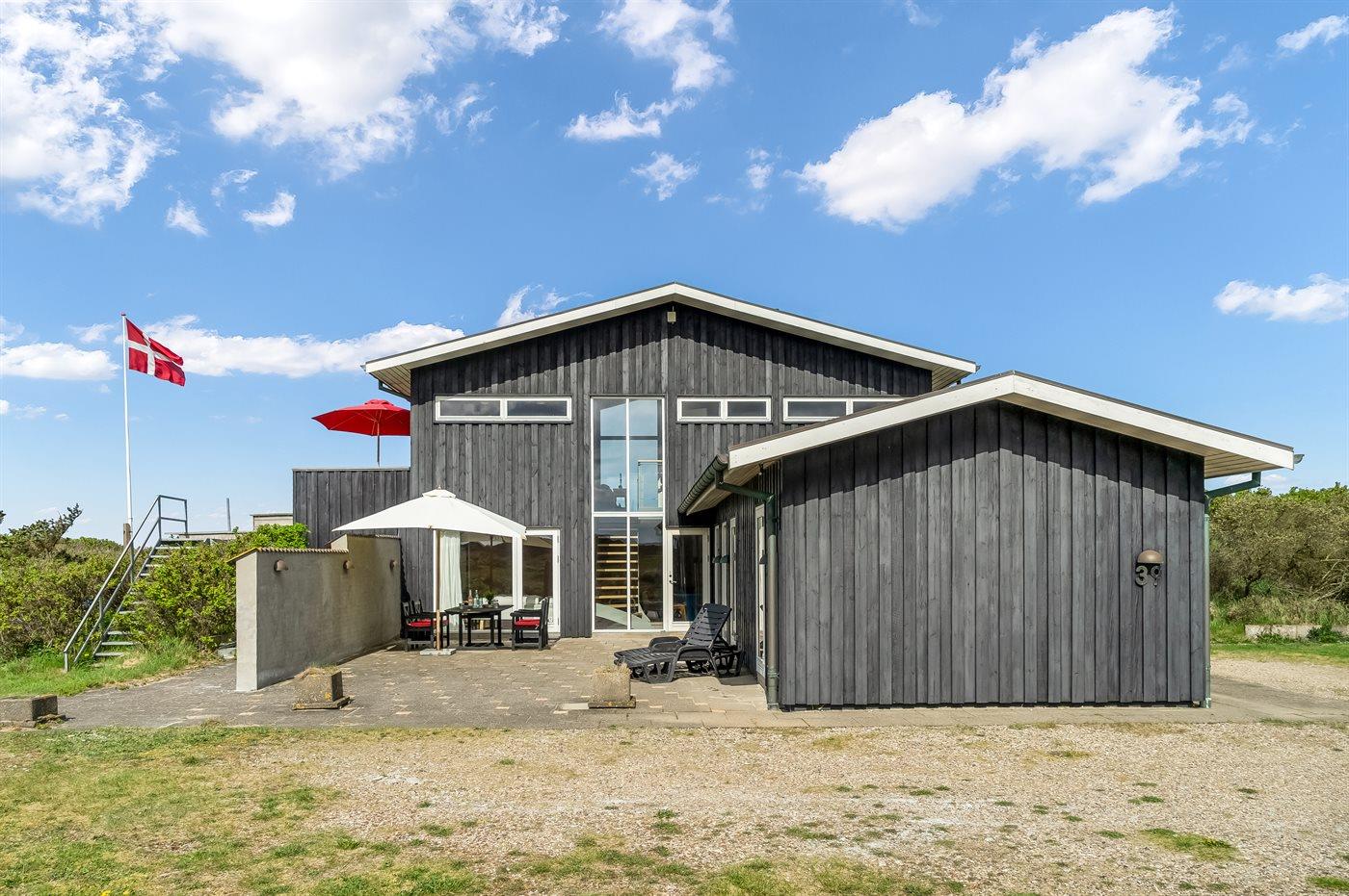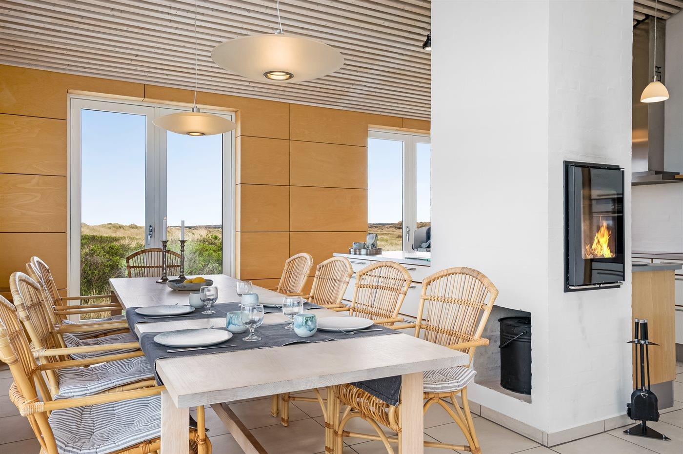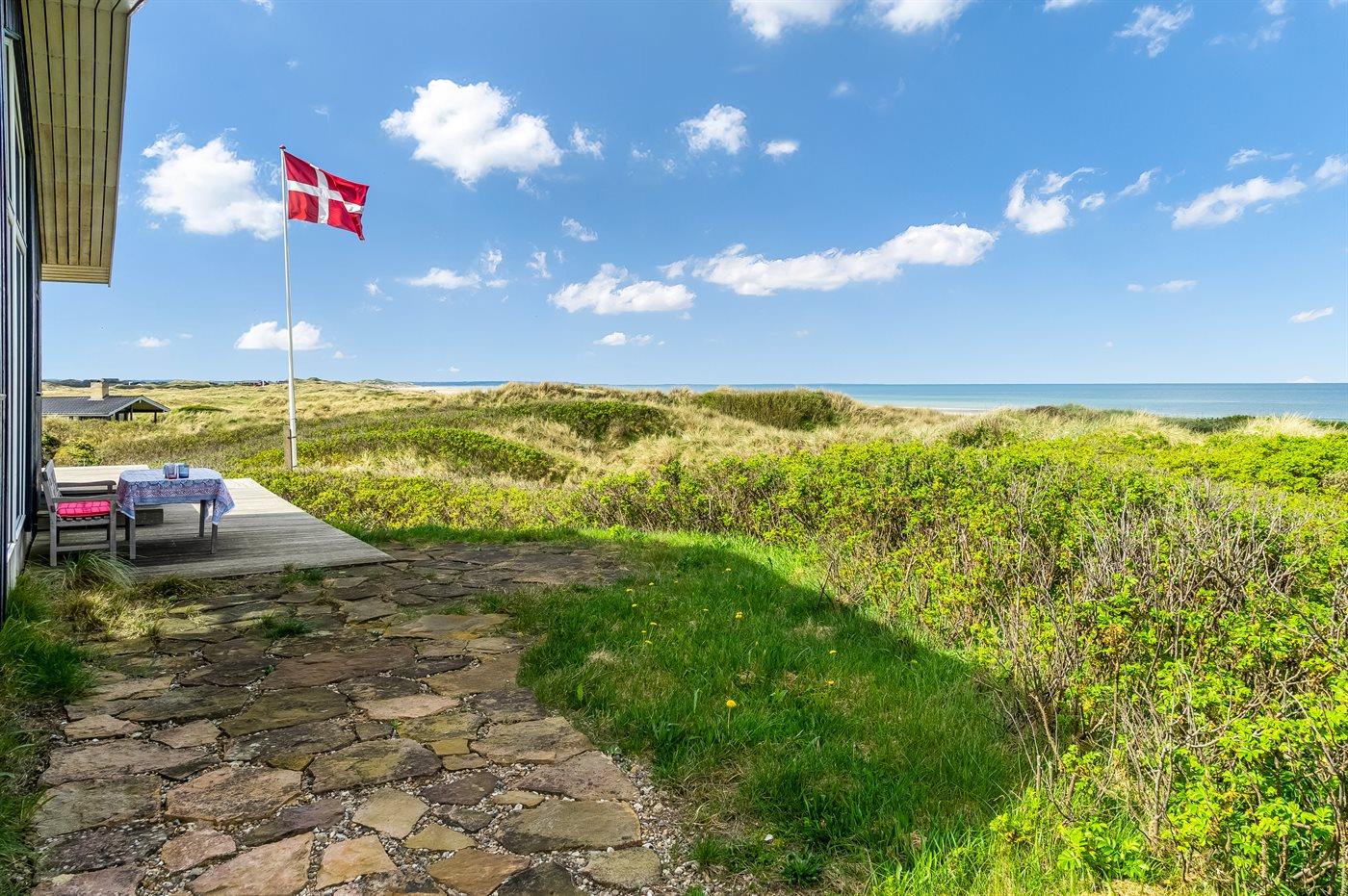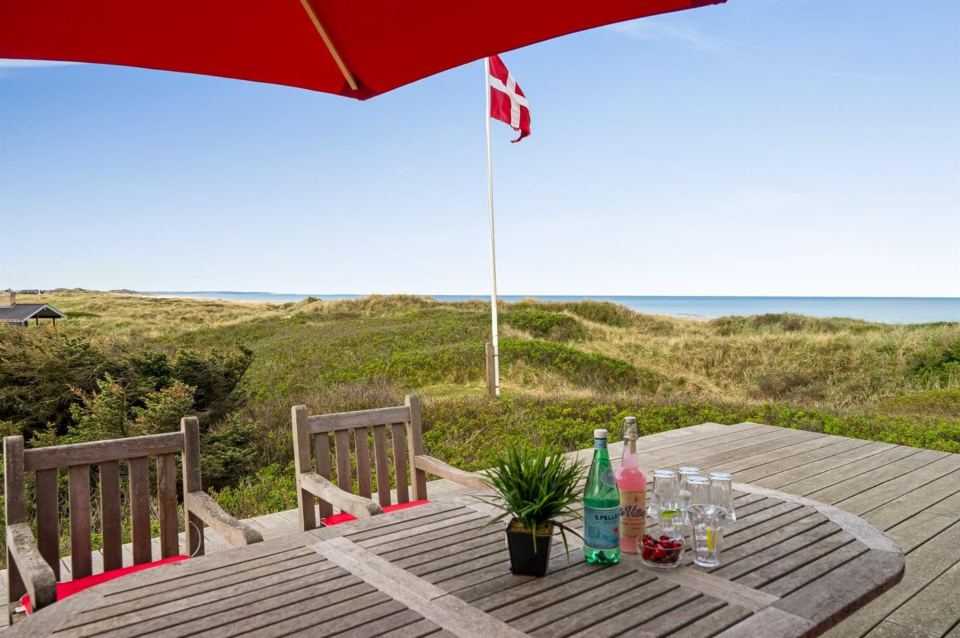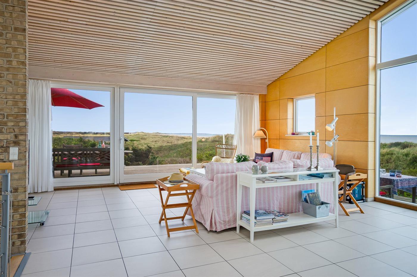 Fantastisk flot sommerhus i 2 etager, renoveret i 2009, beliggende på en stor klitgrund, kun 50 m fra stranden og med en helt enestående panoramaudsigt til Rubjerg Knude i nord og Bulbjerg i syd. Huset er totalrenoveret og fremstår i dag som nyt. Til huset hører et stor terrasseareal med havemøbler - herfra kan I nyde udsigten i fulde drag. Indvendig er der opvarmede klinkegulve. 2 dejlige badeværelser, begge med bruseniche. På husets 1. sal finder I det flotte køkken som bl.a. er udstyret med opvaskemaskine, amerikansk køleskab med isterningmaskine og fryser, varmluftovn samt komfur med keramiske kogeplader. Den smagfuldt indrettede opholdsstue med brændeovn, stereoanlæg med CD-afspiller, DVD-afspiller og TV samt 1 soveværelser med dobbeltseng. I stueetagen findes der stort opholdsstue/aktivitetsrum med brændeovn, bobspil samt flere andre spil. I stueetagen finder I ligeledes 3 soveværelser, alle med dobbeltseng. Af yderligere udstyr kan vaskemaskine, tørretumbler, ekstra køleskab og fryser, barneseng og høj barnestol nævnes. Derudover er der trådløst internet til rådighed. Huset er helårsisoleret og der er installeret et energibesparende varmegenvindingsanlæg. Et fantastisk sommerhus med en hel unik beliggenhed - til en dejlig og afslappende ferie uanset årstiden. Huset ligger ca. 8 km fra 18-hullers golfbane.