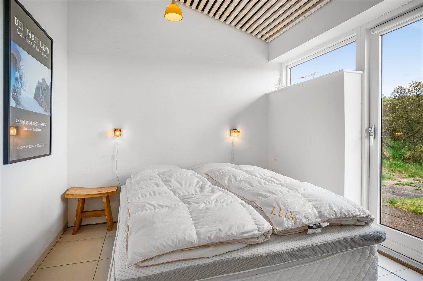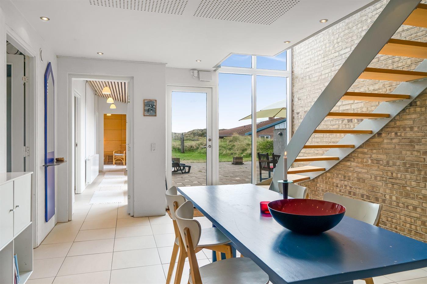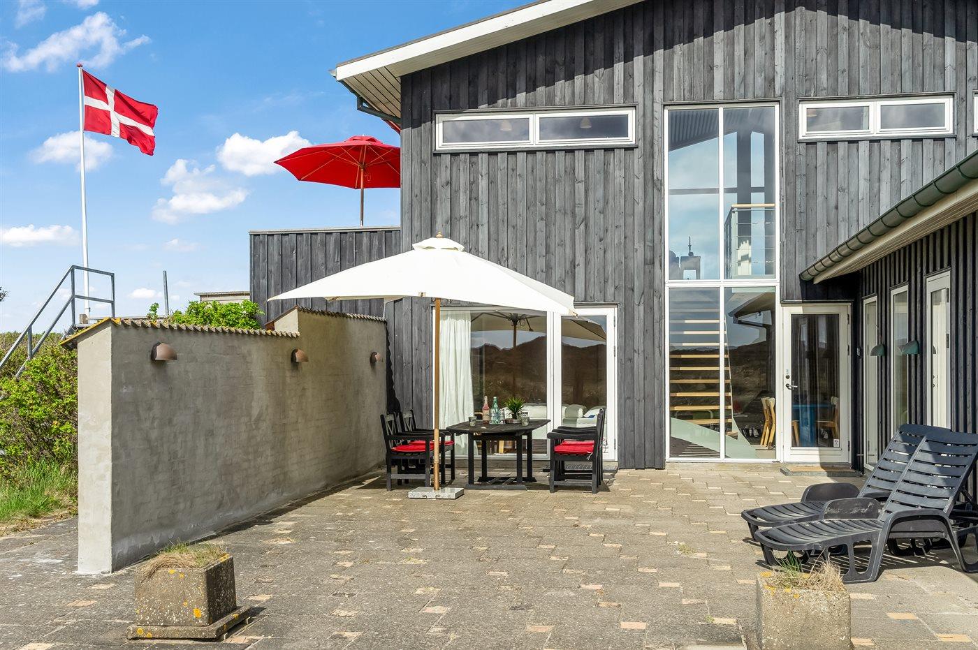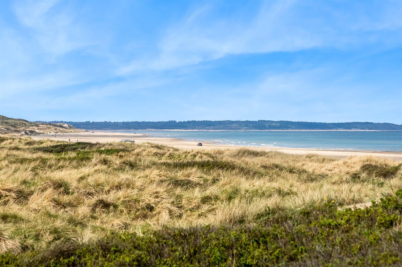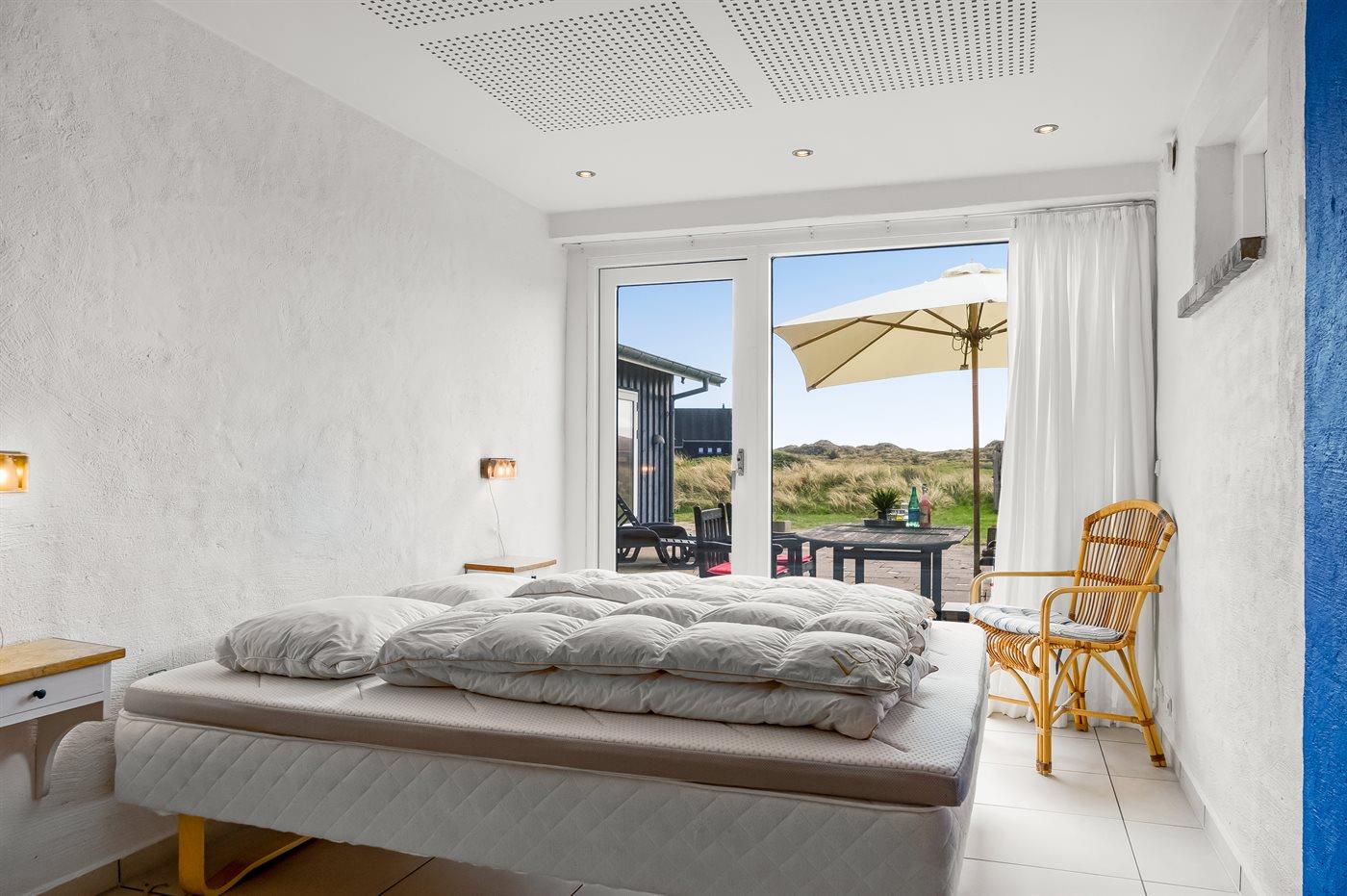 Fantastisk flot sommerhus i 2 etager, renoveret i 2009, beliggende på en stor klitgrund, kun 50 m fra stranden og med en helt enestående panoramaudsigt til Rubjerg Knude i nord og Bulbjerg i syd. Huset er totalrenoveret og fremstår i dag som nyt. Til huset hører et stor terrasseareal med havemøbler - herfra kan I nyde udsigten i fulde drag. Indvendig er der opvarmede klinkegulve. 2 dejlige badeværelser, begge med bruseniche. På husets 1. sal finder I det flotte køkken som bl.a. er udstyret med opvaskemaskine, amerikansk køleskab med isterningmaskine og fryser, varmluftovn samt komfur med keramiske kogeplader. Den smagfuldt indrettede opholdsstue med brændeovn, stereoanlæg med CD-afspiller, DVD-afspiller og TV samt 1 soveværelser med dobbeltseng. I stueetagen findes der stort opholdsstue/aktivitetsrum med brændeovn, bobspil samt flere andre spil. I stueetagen finder I ligeledes 3 soveværelser, alle med dobbeltseng. Af yderligere udstyr kan vaskemaskine, tørretumbler, ekstra køleskab og fryser, barneseng og høj barnestol nævnes. Derudover er der trådløst internet til rådighed. Huset er helårsisoleret og der er installeret et energibesparende varmegenvindingsanlæg. Et fantastisk sommerhus med en hel unik beliggenhed - til en dejlig og afslappende ferie uanset årstiden. Huset ligger ca. 8 km fra 18-hullers golfbane.
