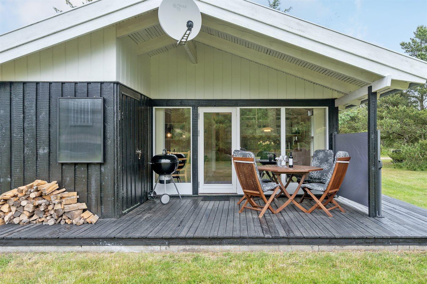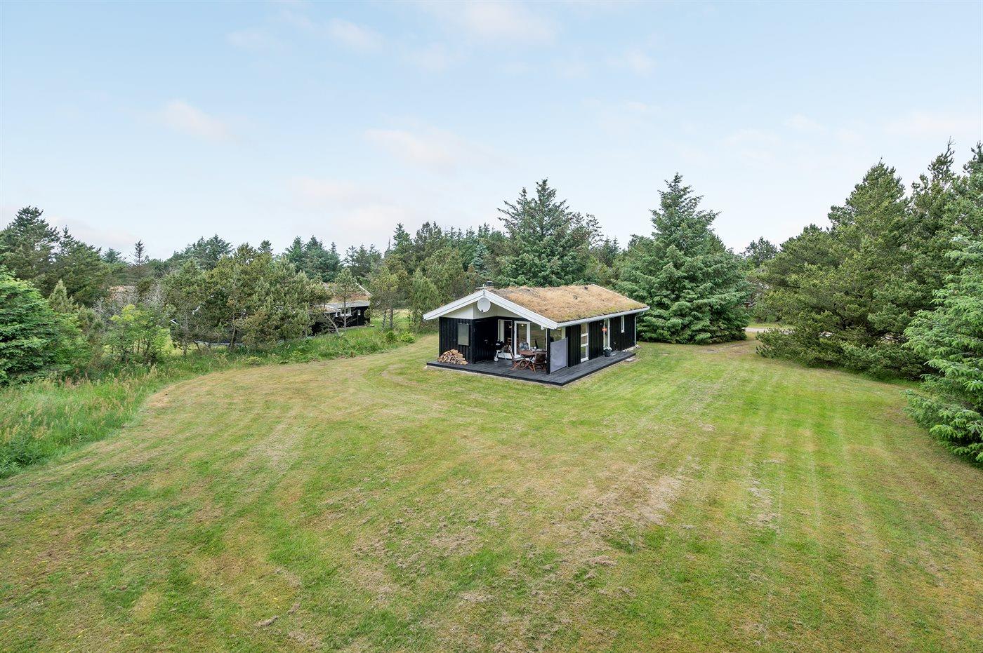 Ferieboligen er beliggende på en 1200 m² stor naturgrund. Der er 1100 m til havet. Nærmeste forretning er beliggende i en afstand af 5000 m. Til ferieboligen hører 12 m² terrasseareal. Desuden er der 8 m² overdækket terrasse.