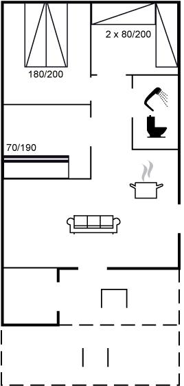 Der er i alt 3 soveværelser. Sovepladserne fordeler sig på: 2 sovepladser i dobbeltseng. 2 sovepladser i enkeltsenge. 2 sovepladser i køjeseng.