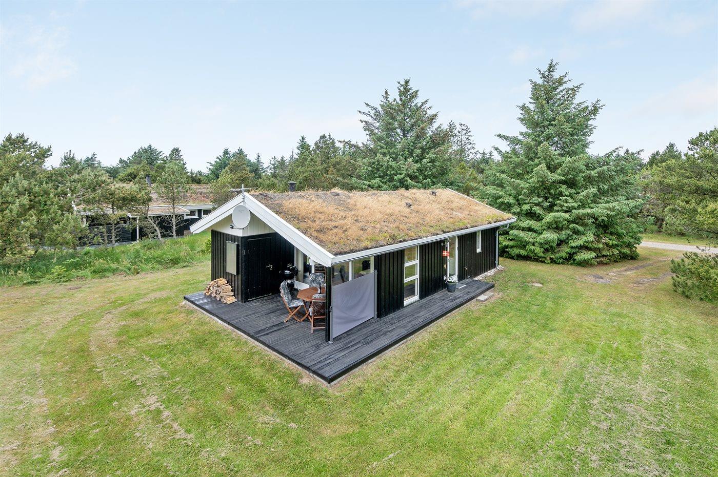 Hyggeligt sommerhus i træ beliggende på en dejlig naturgrund i familievenlige omgivelser. Der er fælles legeplads og lille fodboldbane i nærheden.