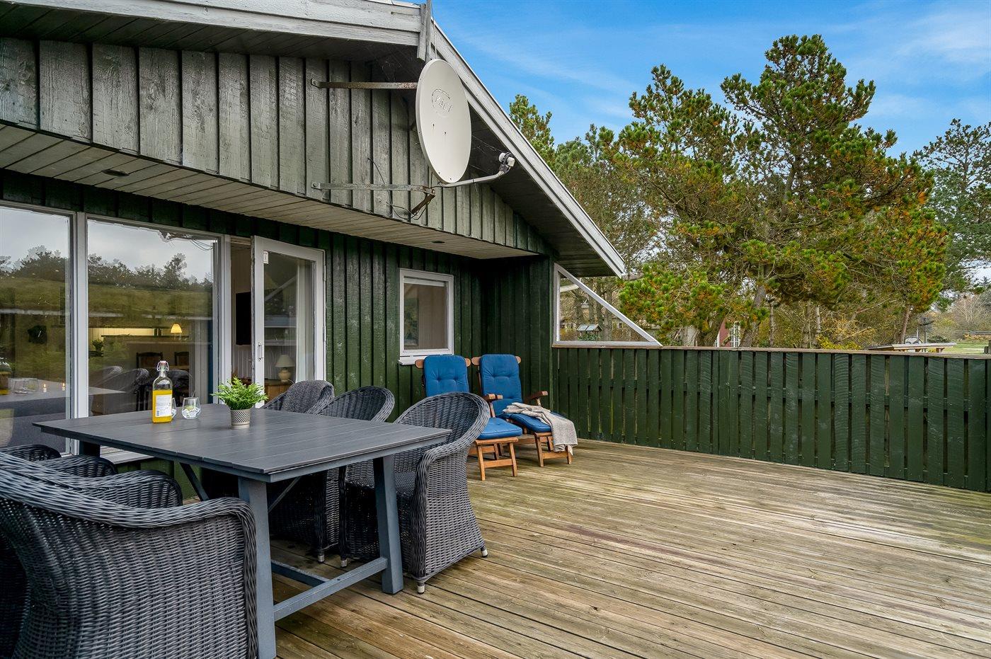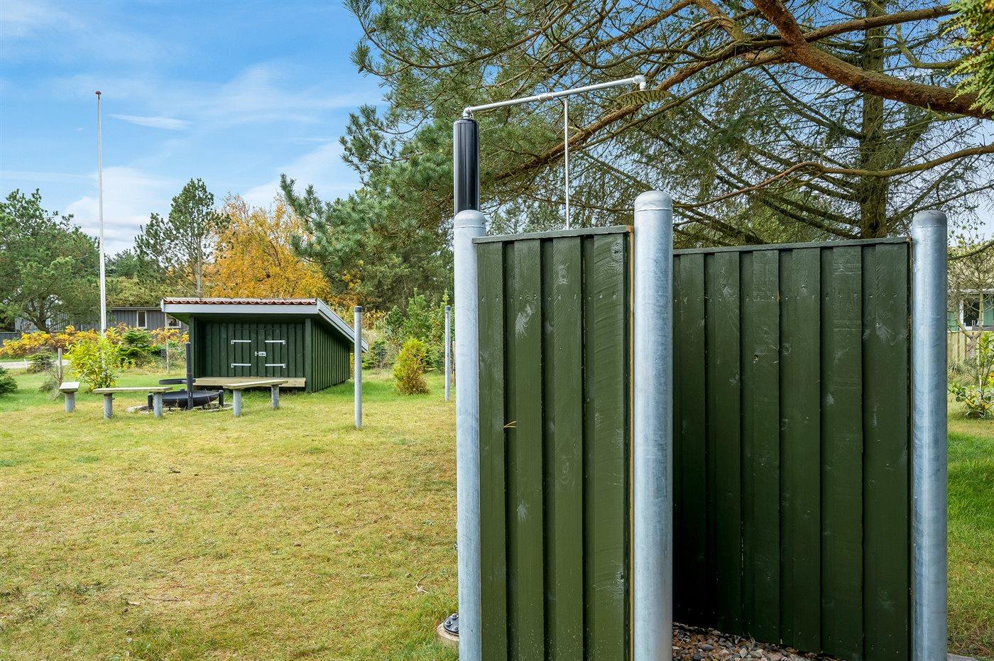Ferieboligen er beliggende på en 914 m² stor naturgrund. Der er 1500 m til havet. Nærmeste forretning er beliggende i en afstand af 5000 m. Til ferieboligen hører 40 m² terrasseareal. Der er redskabsrum. Bålsted. Shelter. Gasgrill står til rådighed. Parkering ved ferieboligen.