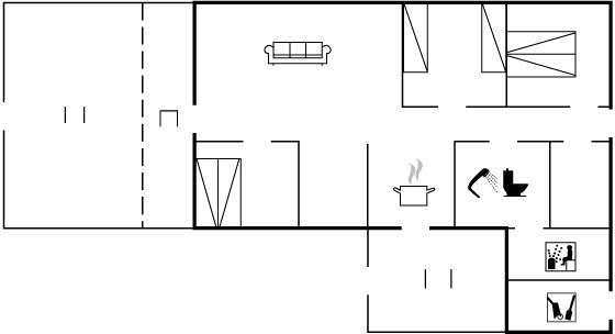 Der er i alt 3 soveværelser. Sovepladserne fordeler sig på: 4 sovepladser i dobbeltsenge. 2 sovepladser i enkeltsenge.