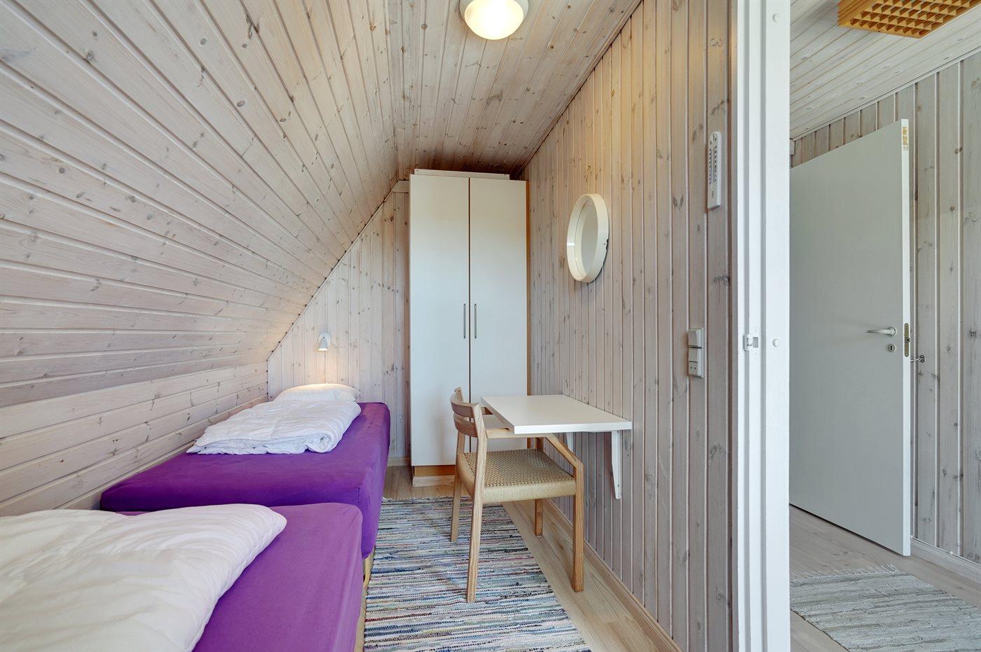 Der er i alt 3 soveværelser. Sovepladserne fordeler sig på: 2 sovepladser i dobbeltseng. 4 sovepladser i enkeltsenge.
