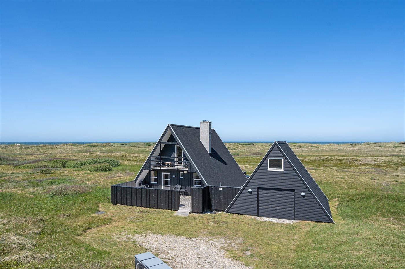 Fantastisk beliggende sommerhus med flot udsigt over Vesterhavet og det uspolerede klitlandskabet fra såvel hus som grund. Huset ligger i rolige og naturskønne omgivelser for enden af lukket vej.