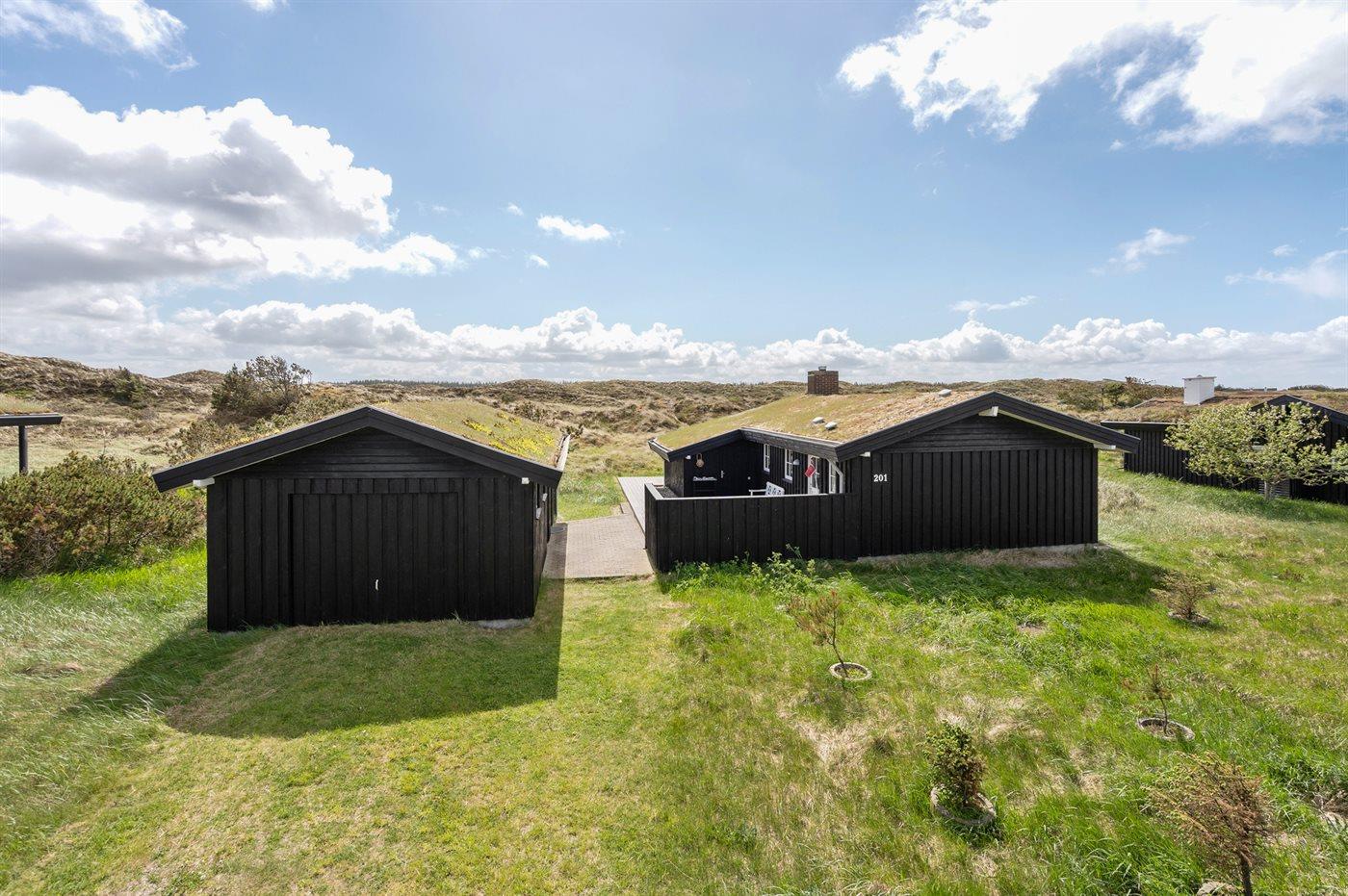 Ferieboligen er beliggende på en 1750 m² stor klitgrund. Der er 500 m til havet. Nærmeste forretning er beliggende i en afstand af 2000 m. Til ferieboligen hører 70 m² terrasseareal. Desuden er der 12 m² overdækket terrasse. Der er redskabsrum. Der er garage til rådighed. Parkering ved ferieboligen.