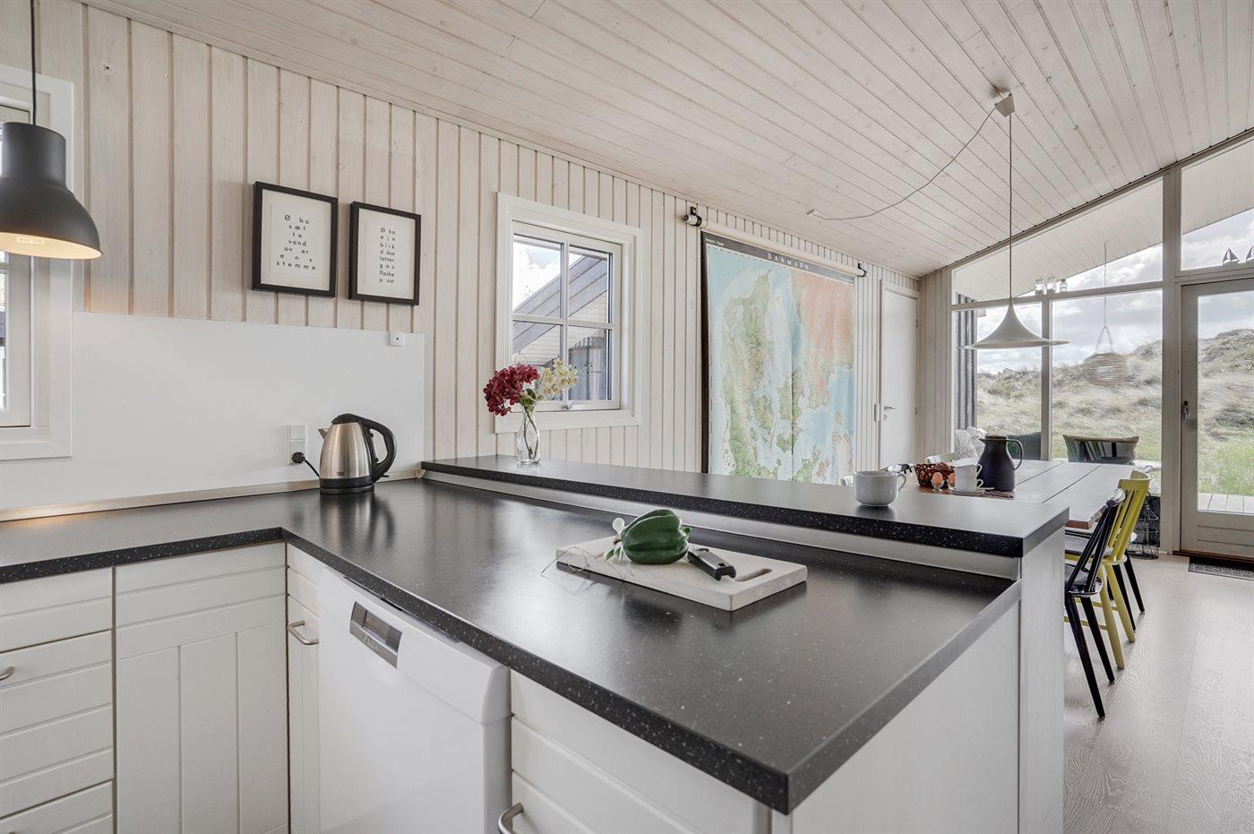 Køkkenet er udstyret med 1 køleskab. Der er 4 keramiske kogeplader, varmluftovn samt opvaskemaskine.
