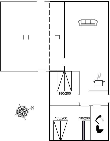 Der er i alt 2 soveværelser. Sovepladserne fordeler sig på: 4 sovepladser i dobbeltsenge. 2 sovepladser i køjeseng.