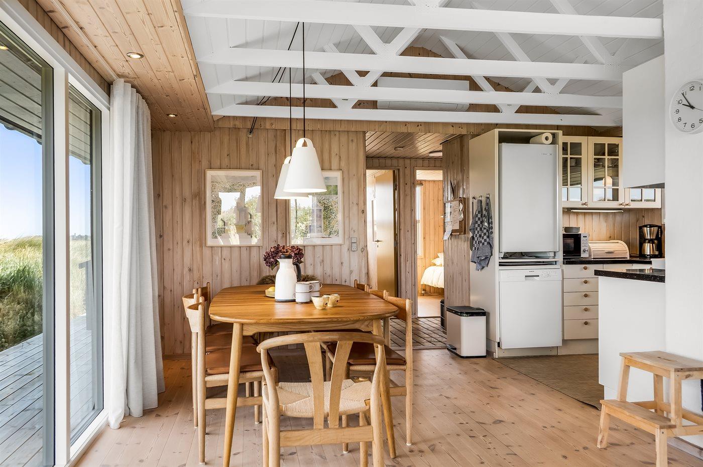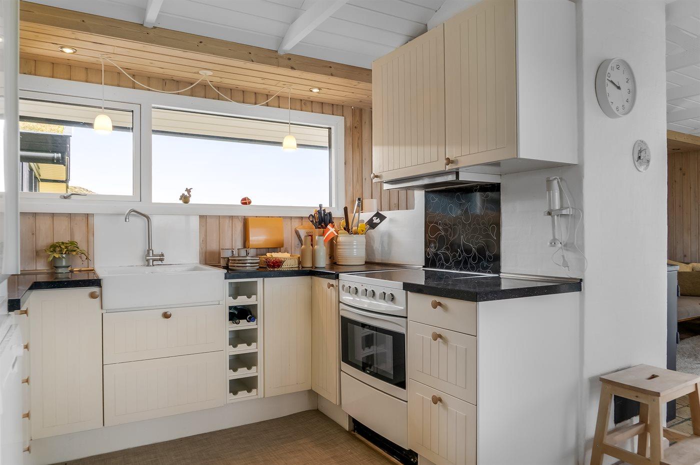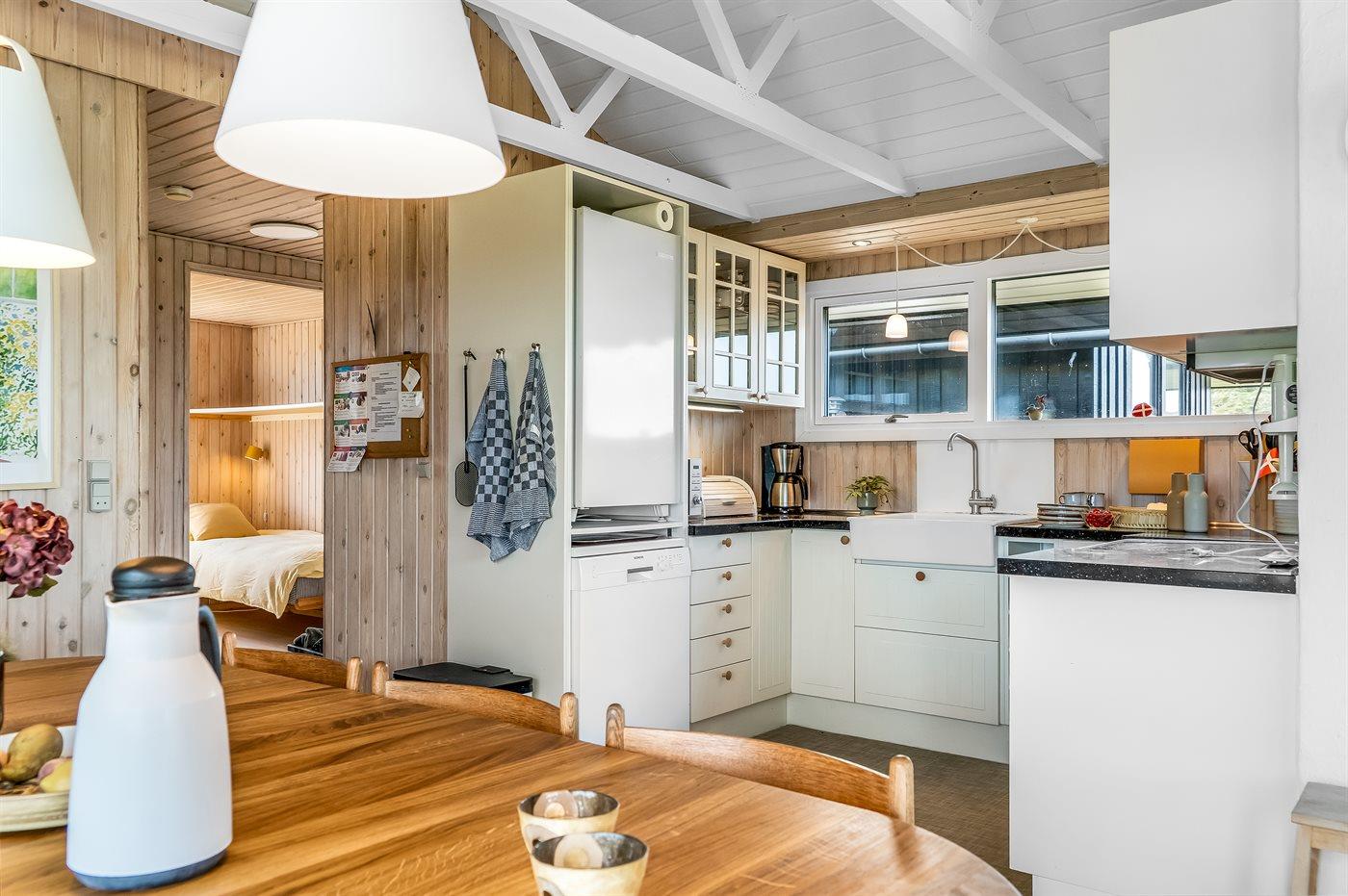 Køkkenet er udstyret med 1 køleskab. Der er 4 keramiske kogeplader, varmluftovn, mikrobølgeovn samt opvaskemaskine.