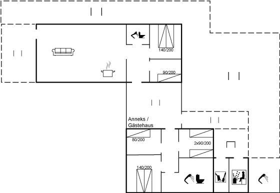Til huset hører et stort anneks hvor 5 af sovepladserne befinder sig. Annekset er indrettet med 3 soveværelser samt eget bad og toilet.