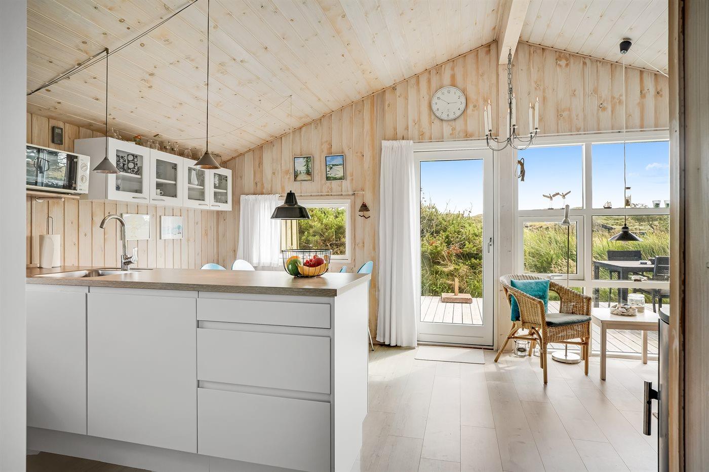 Køkkenet er udstyret med 1 køleskab. Der er 4 keramiske kogeplader, varmluftovn, mikrobølgeovn samt opvaskemaskine. Der findes ekstra køleskab i skuret.