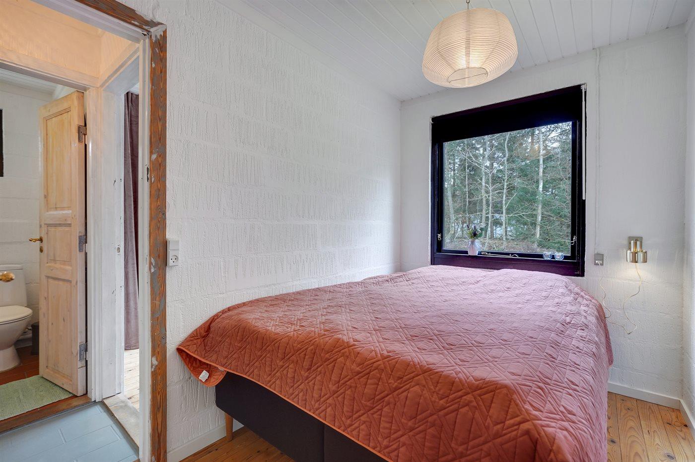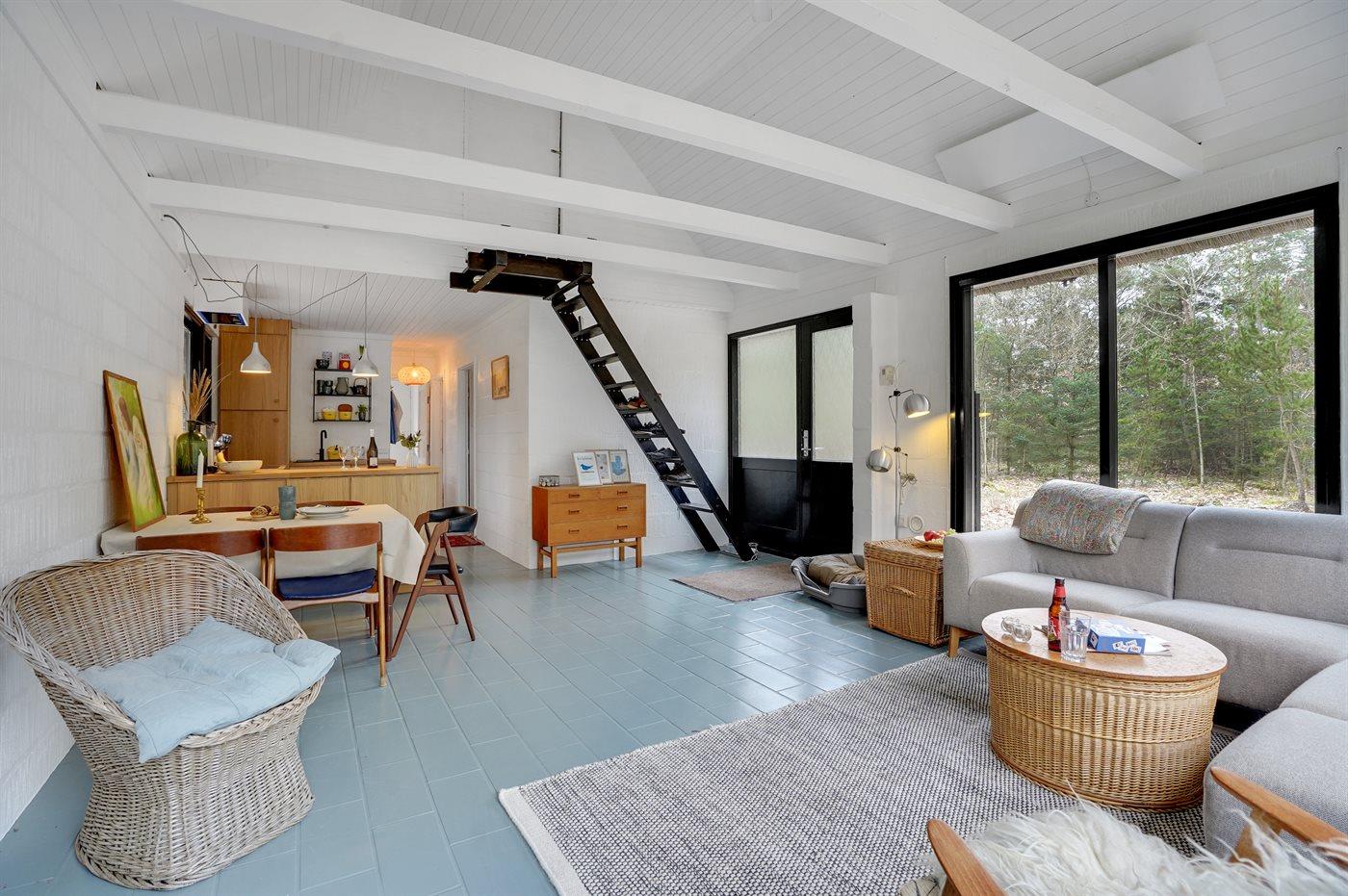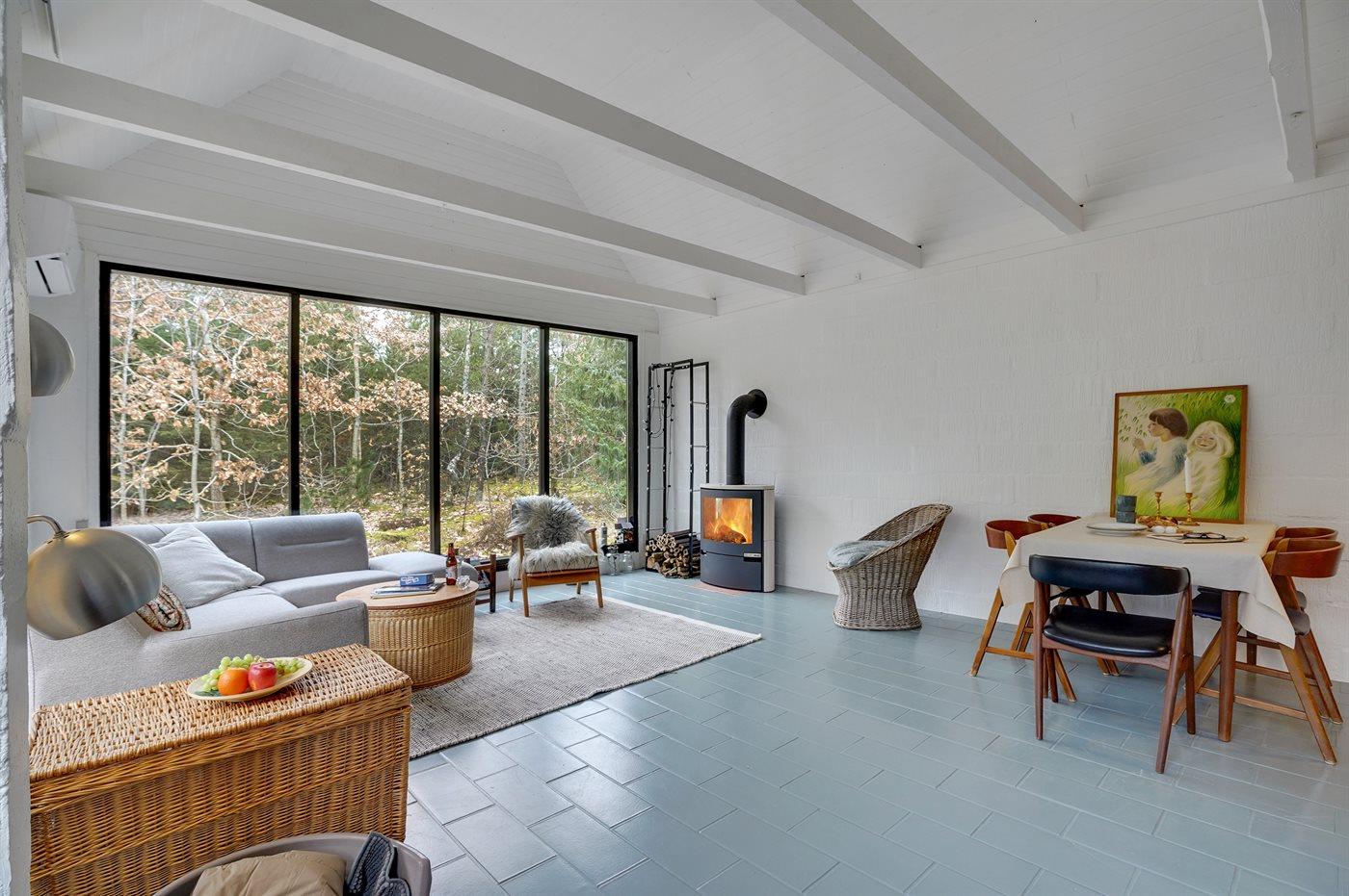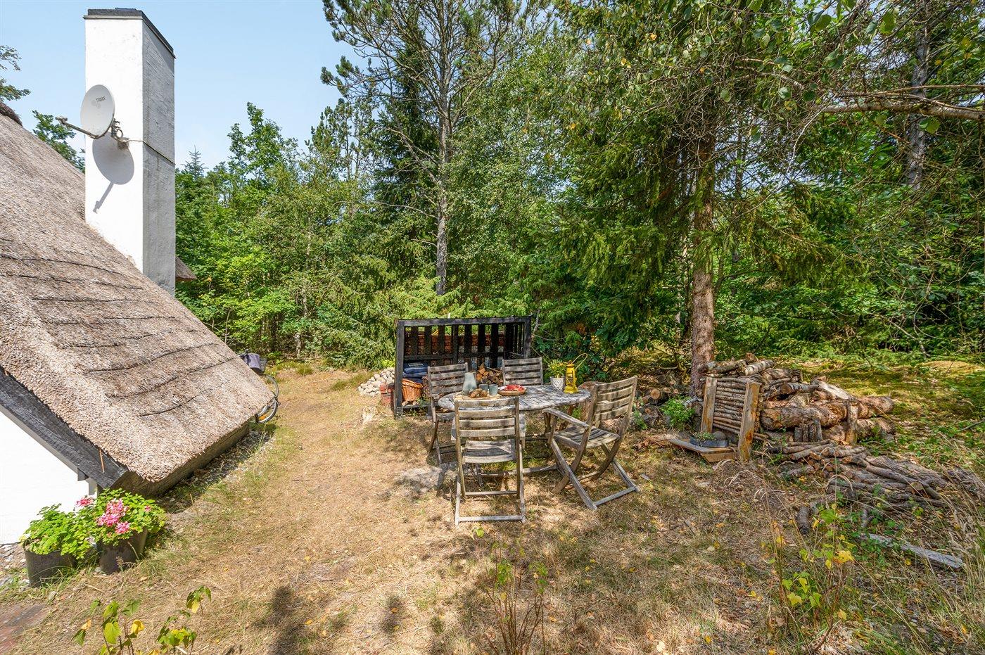Charmerende sommerhus beliggende på en meget stor grund i flot natur nær skov og strand.