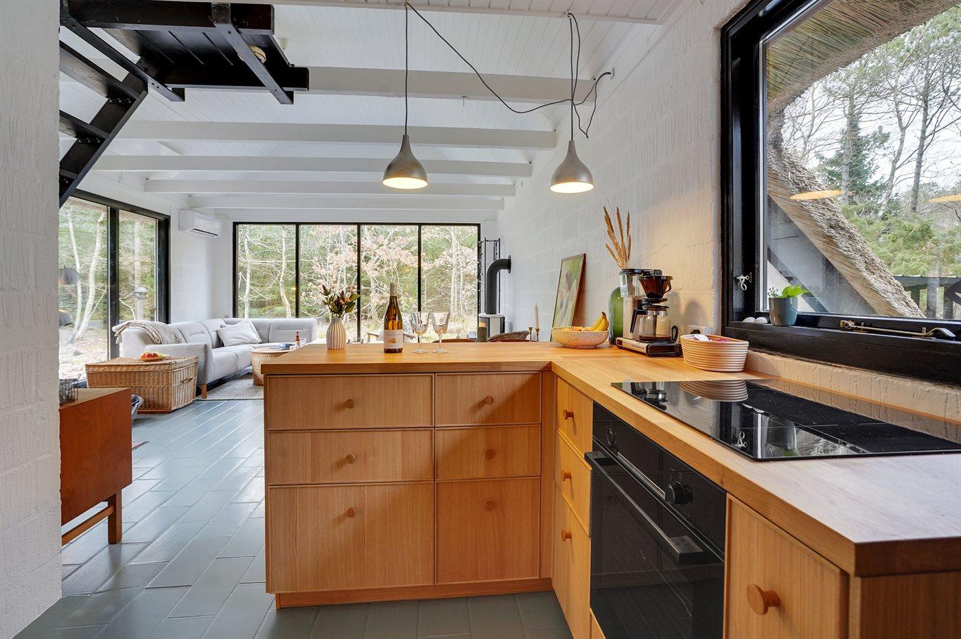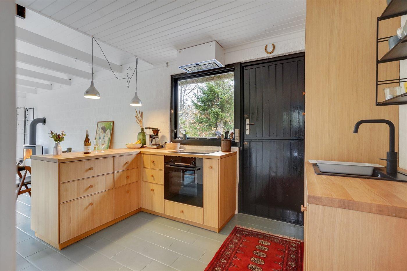 Køkkenet er udstyret med 1 køleskab. Der er 4 induktionskogeplader, varmluftovn, mikrobølgeovn samt opvaskemaskine samt opvaskemaskine (bordmodel).