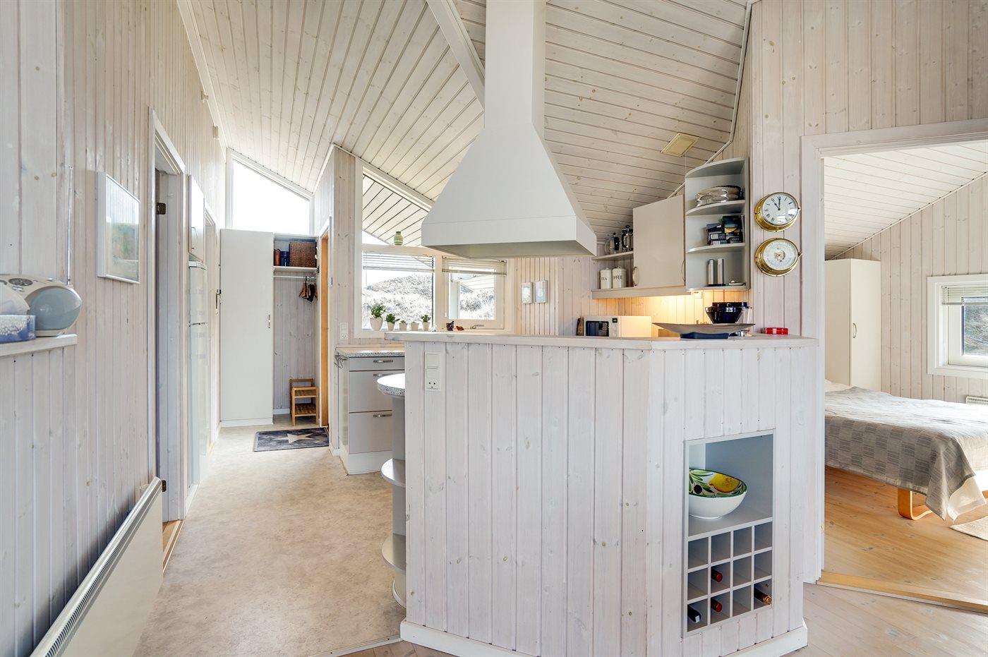 Køkkenet er udstyret med 1 køleskab. Der er 4 induktionskogeplader, varmluftovn, mikrobølgeovn samt opvaskemaskine.