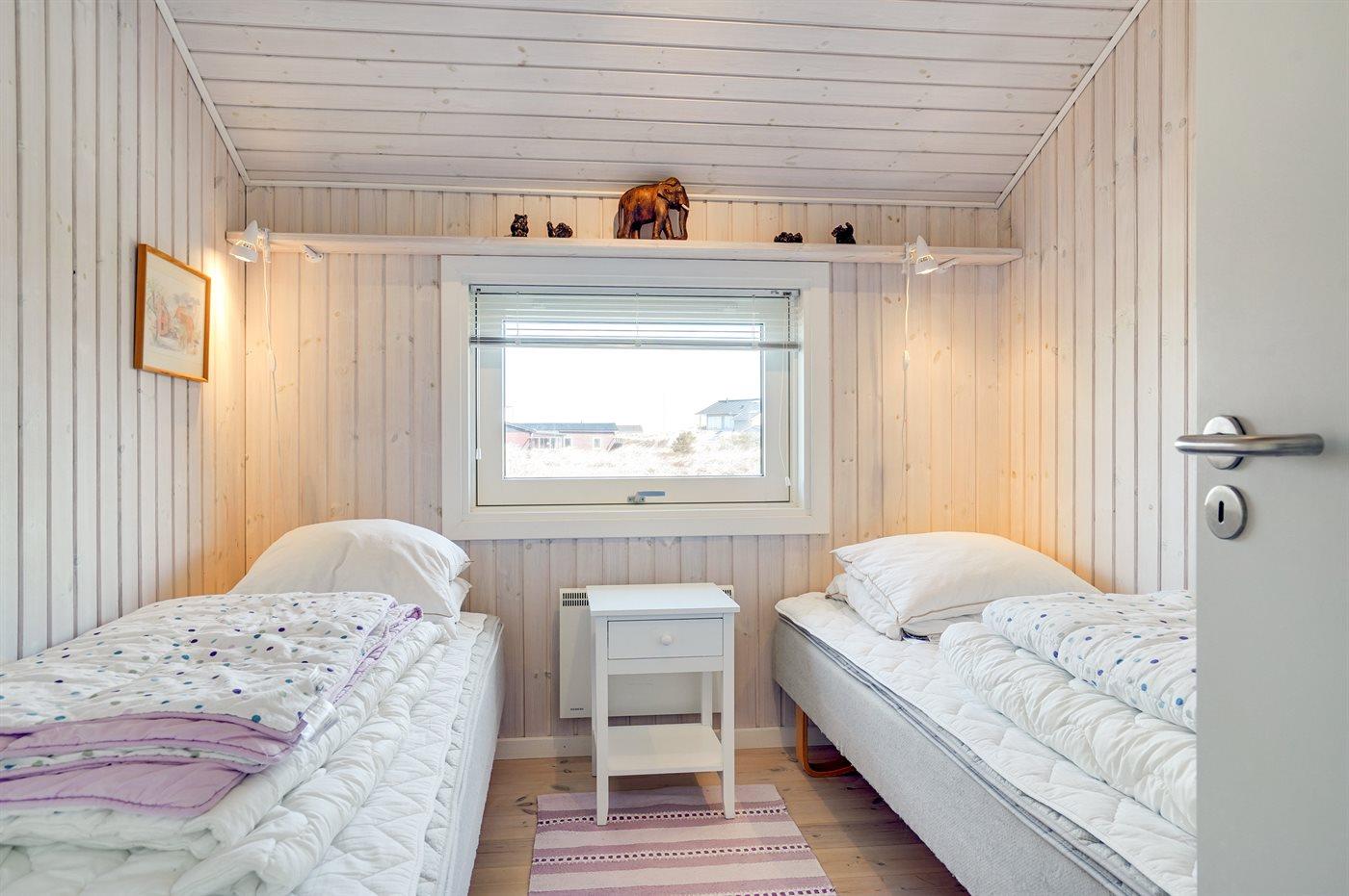 Der er i alt 3 soveværelser. Sovepladserne fordeler sig på: 2 sovepladser i dobbeltseng. 2 sovepladser i enkeltsenge. 2 sovepladser i sovesofa (dobbelt).