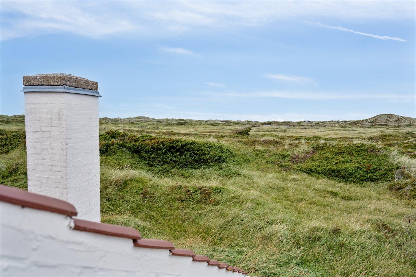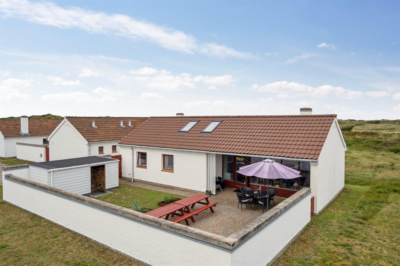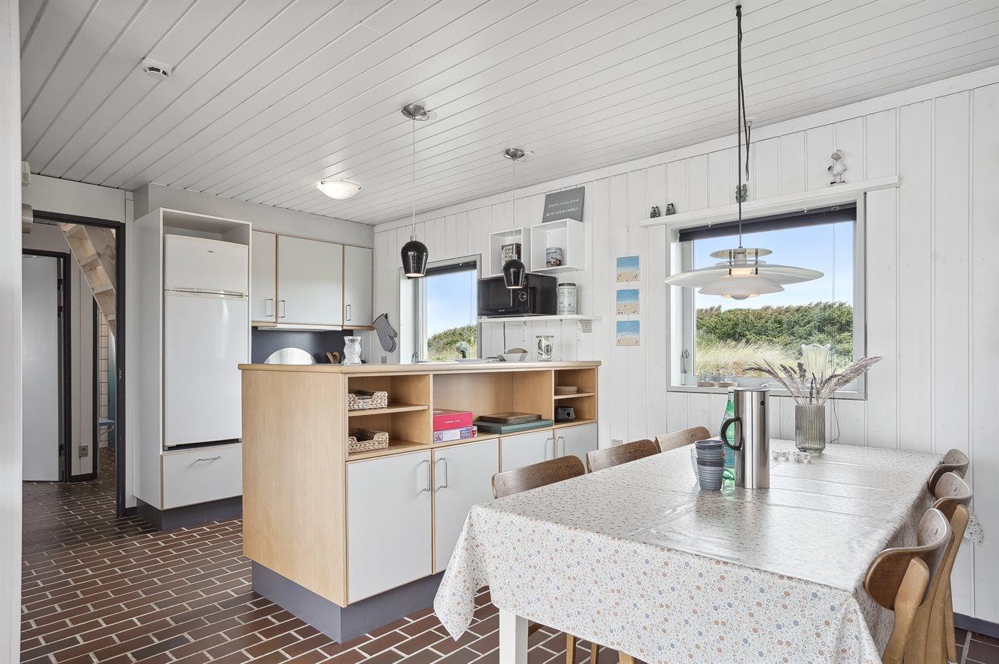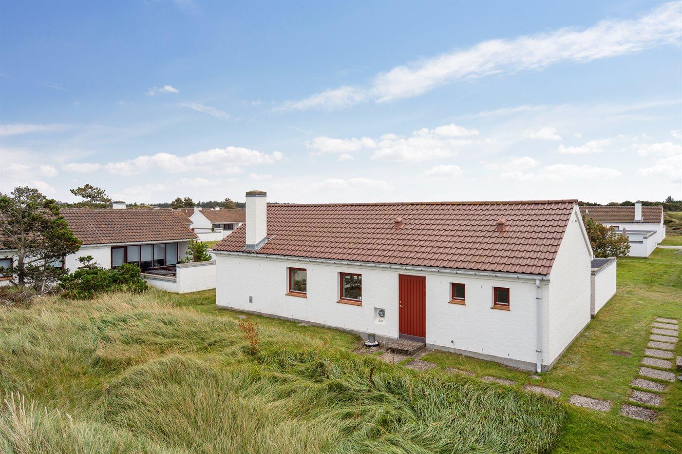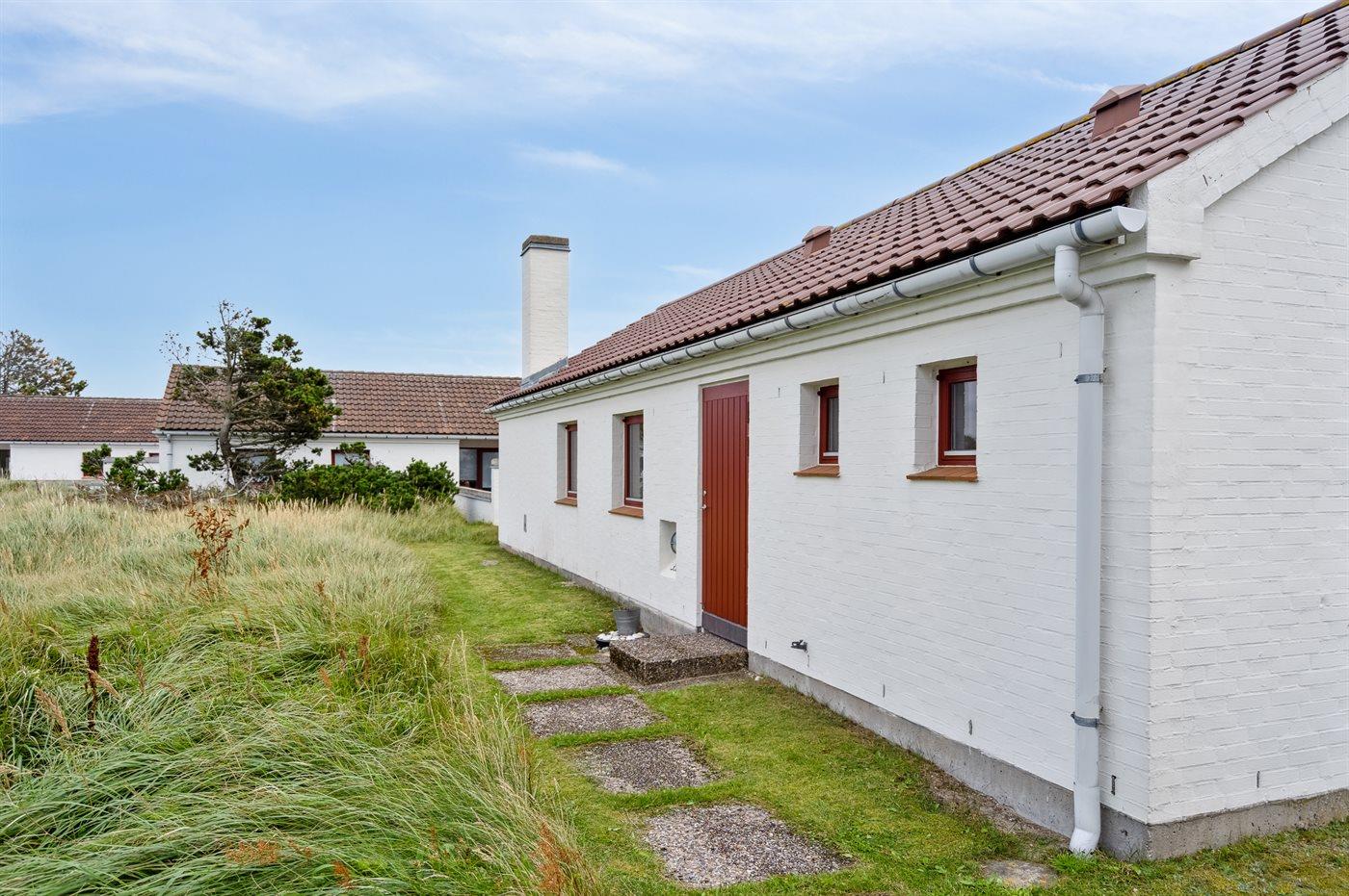 En hyggelig og lyst indrettet feriebolig beliggende i en ferieby lige bag klitterne til stranden og Vesterhavet - i et naturskønt og kuperet område.
