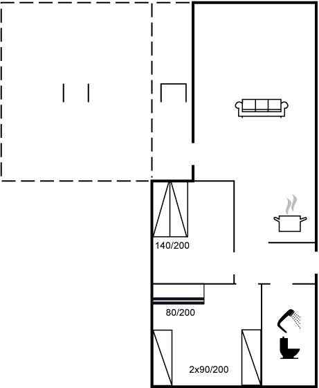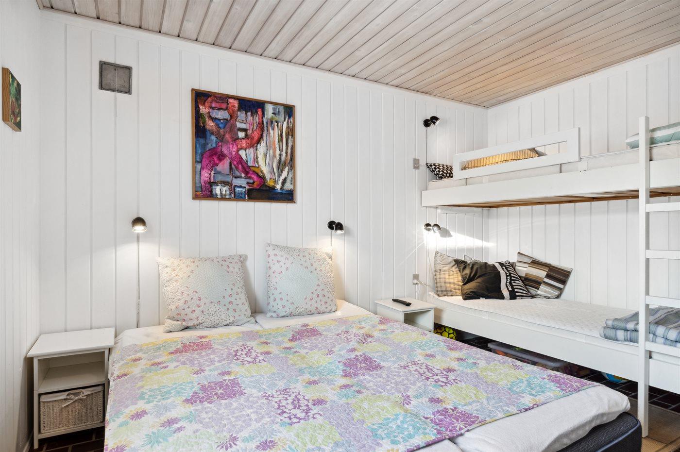 Der er i alt 2 soveværelser. Sovepladserne fordeler sig på: 2 sovepladser i dobbeltseng. 2 sovepladser i enkeltsenge. 2 sovepladser i køjeseng.