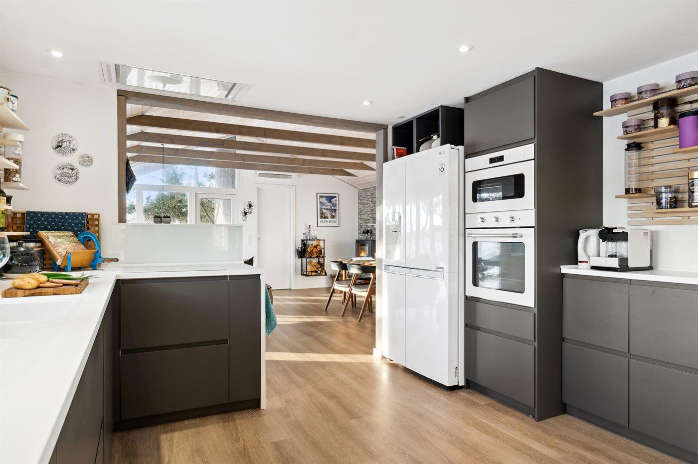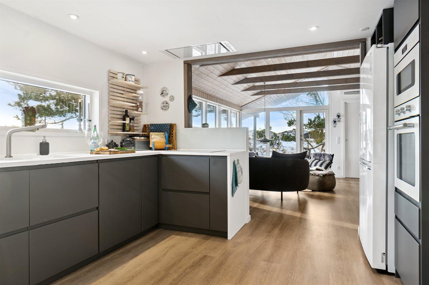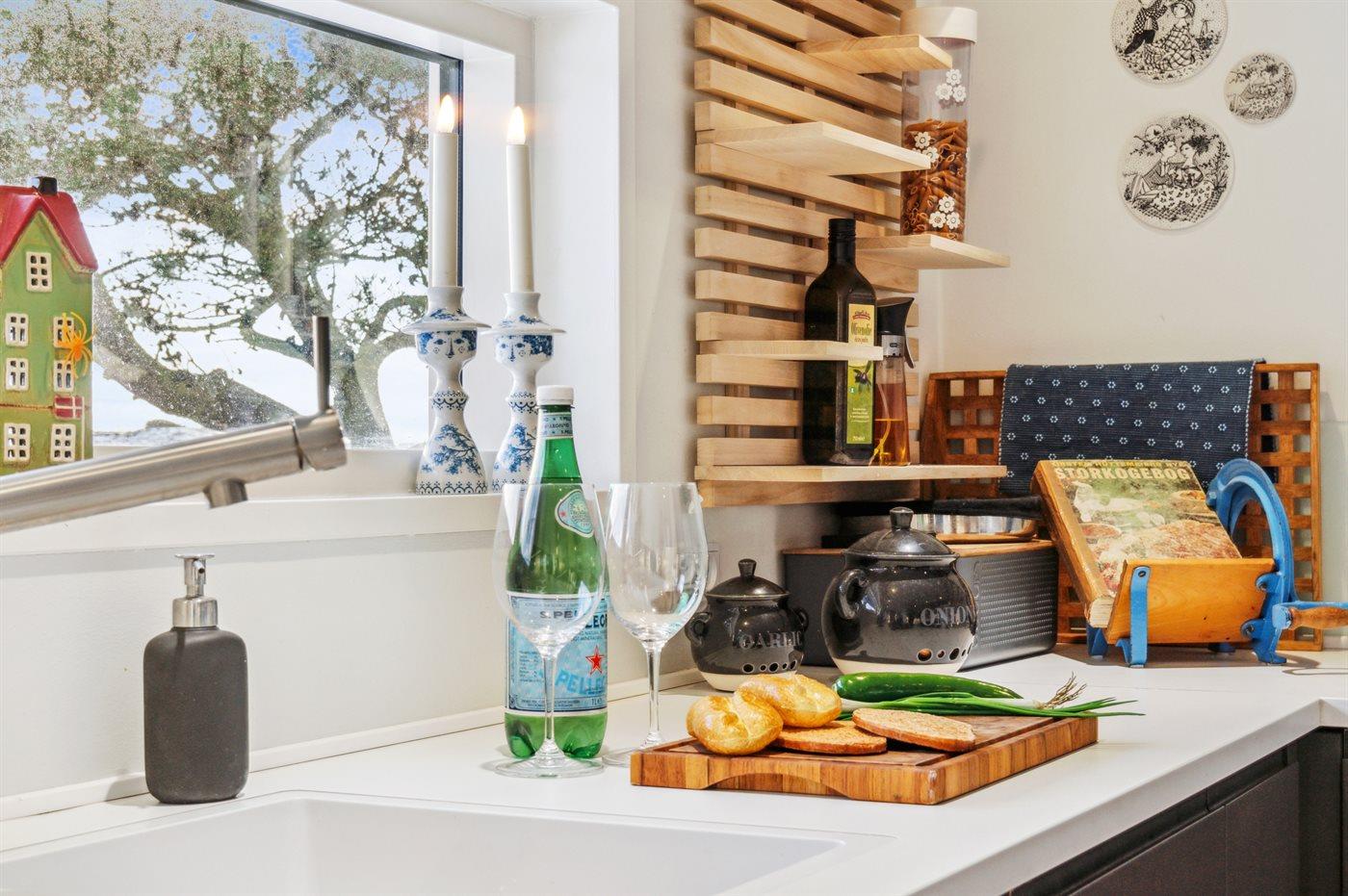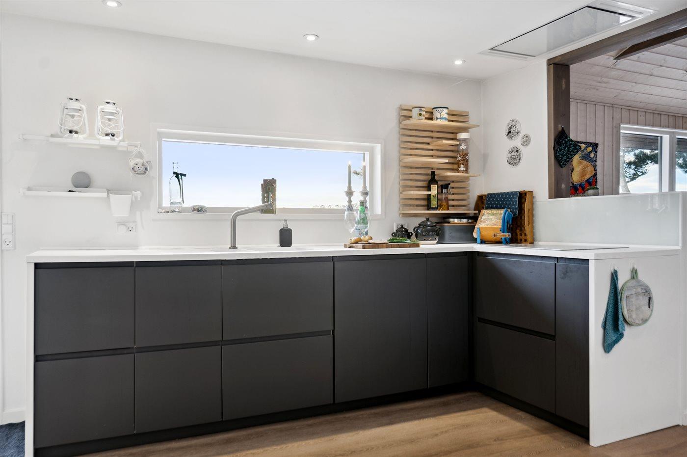 Køkkenet er udstyret med 1 amerikansk køleskab. Der er 4 induktionskogeplader, varmluftovn, mikrobølgeovn samt opvaskemaskine.