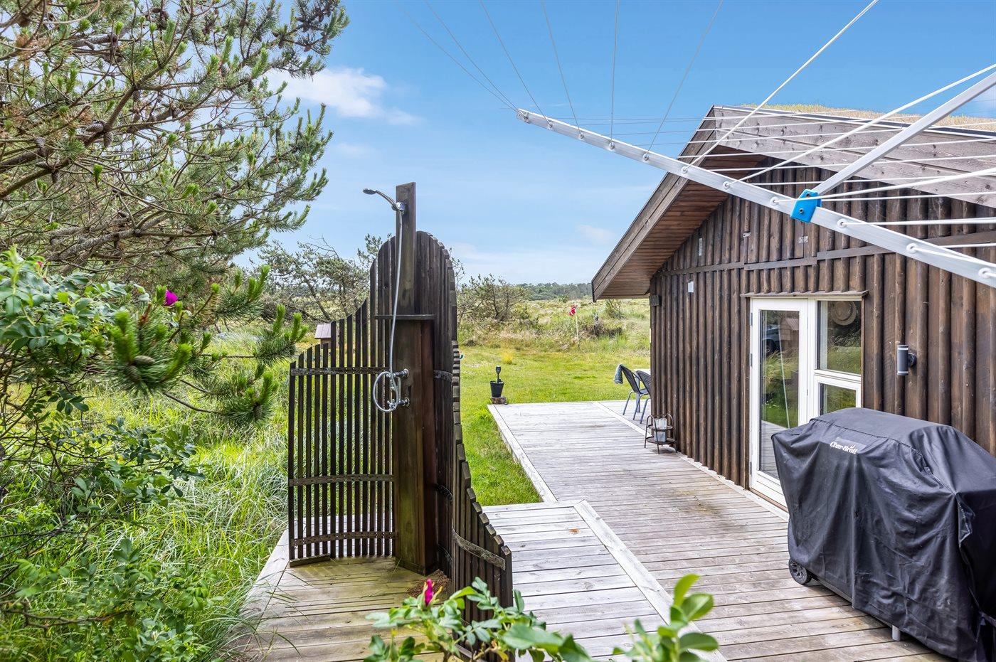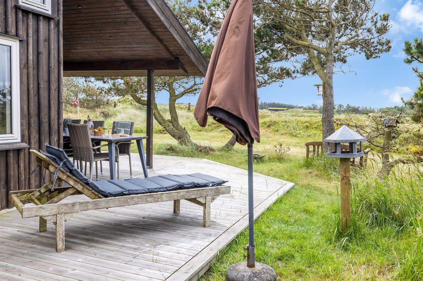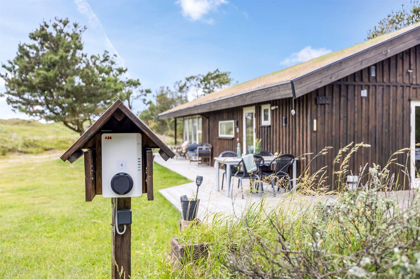 Ferieboligen er beliggende på en 1865 m² stor naturgrund. Der er 500 m til havet. Nærmeste forretning er beliggende i en afstand af 6000 m. Der er en golfbane i en afstand af 6000 m. Til ferieboligen hører 50 m² terrasseareal. Desuden er der 20 m² overdækket terrasse. Grill til rådighed. Der er installeret stik til opladning af elbil. Med 11 kW ladeeffekt. Parkering ved ferieboligen.
