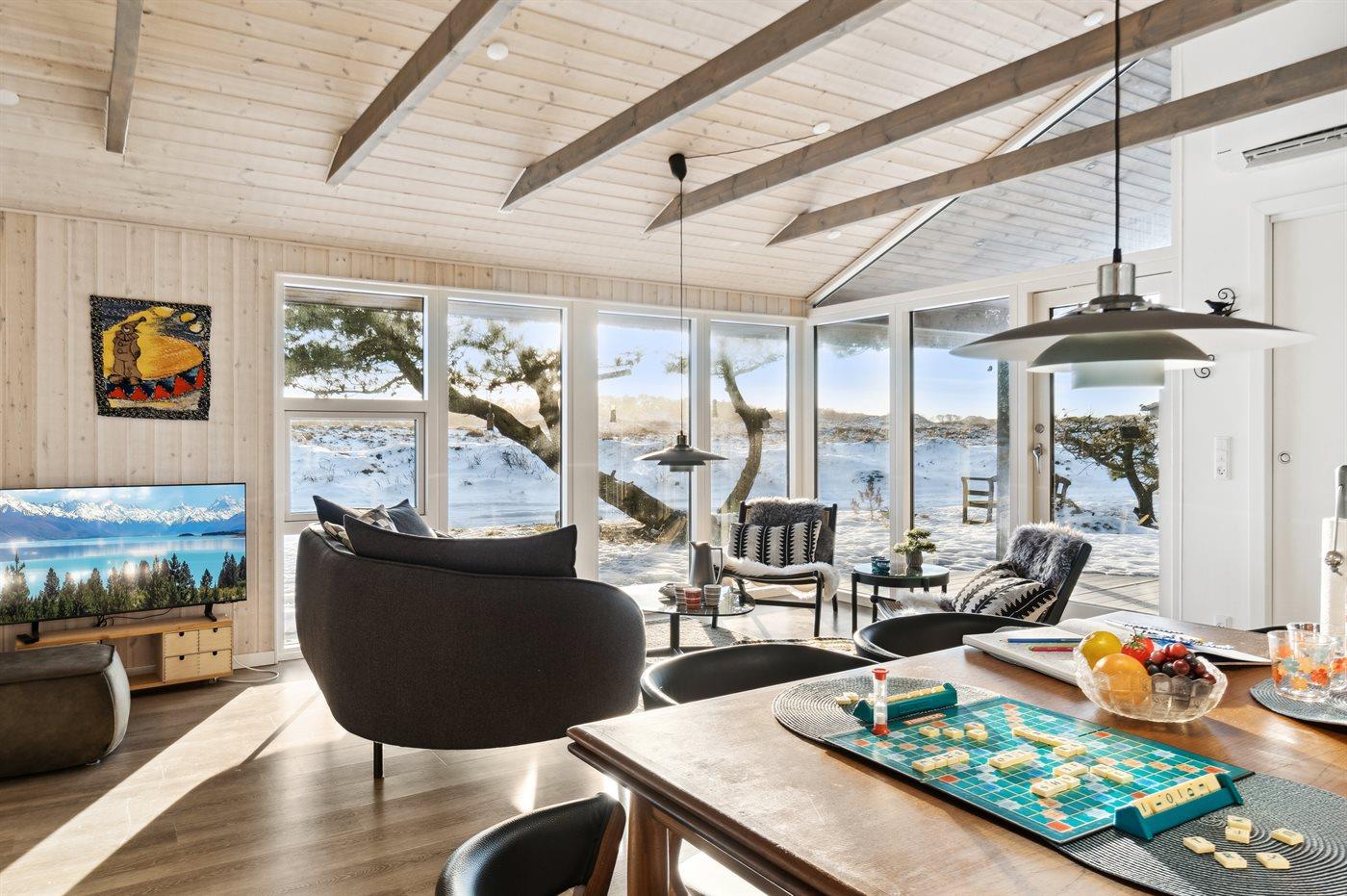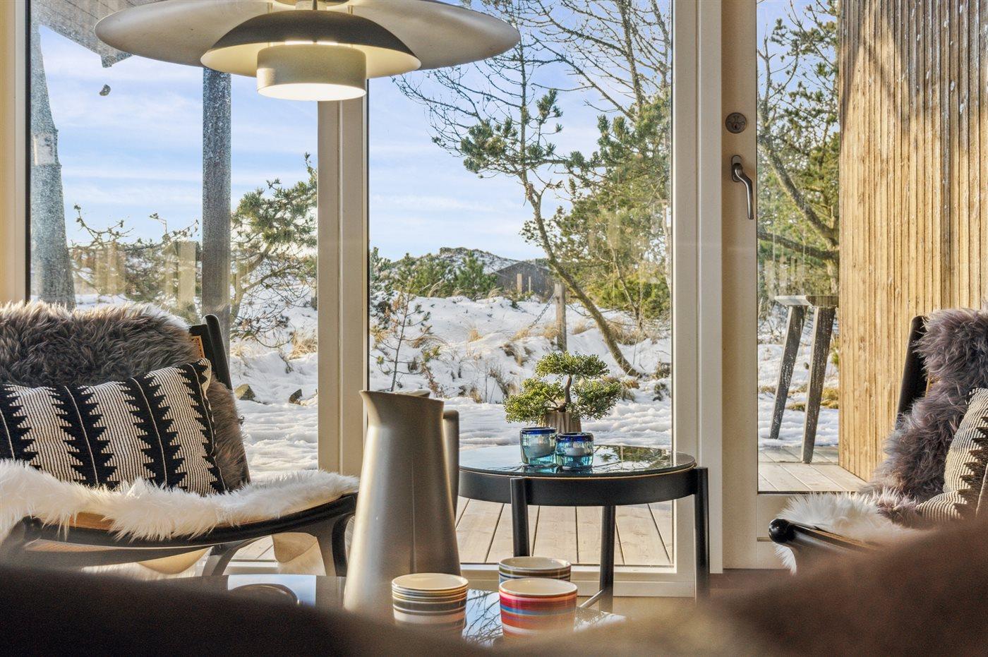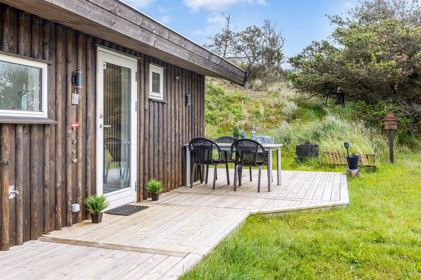 Ferieboligen er beliggende på en 1865 m² stor naturgrund. Der er 500 m til havet. Nærmeste forretning er beliggende i en afstand af 6000 m. Der er en golfbane i en afstand af 6000 m. Til ferieboligen hører 50 m² terrasseareal. Desuden er der 20 m² overdækket terrasse. Grill til rådighed. Der er installeret stik til opladning af elbil. Med 11 kW ladeeffekt. Parkering ved ferieboligen.