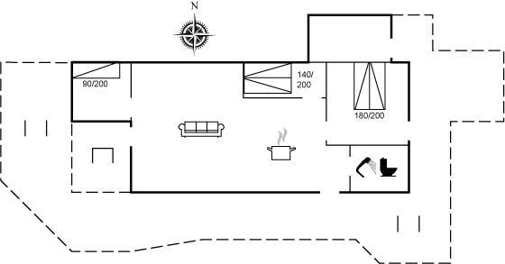 Der er i alt 3 soveværelser. Sovepladserne fordeler sig på: 4 sovepladser i dobbeltsenge. 1 soveplads i enkeltseng.