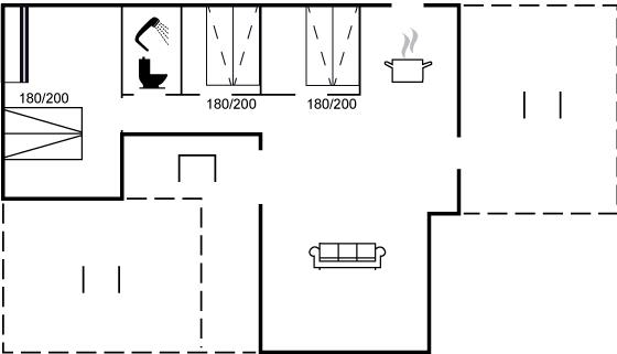 Der er i alt 3 soveværelser. Sovepladserne fordeler sig på: 2 sovepladser i dobbeltseng. 4 sovepladser i sovesofa (enkelt).