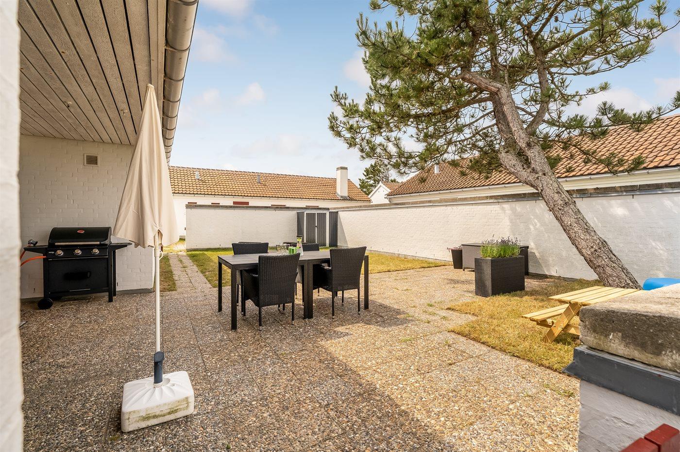 Husets hyggelige og lukkede gårdterrasse inviterer til afslappende stunder i læ for vinden, hvor du kan nyde solen, en god bog eller et måltid under åben himmel.