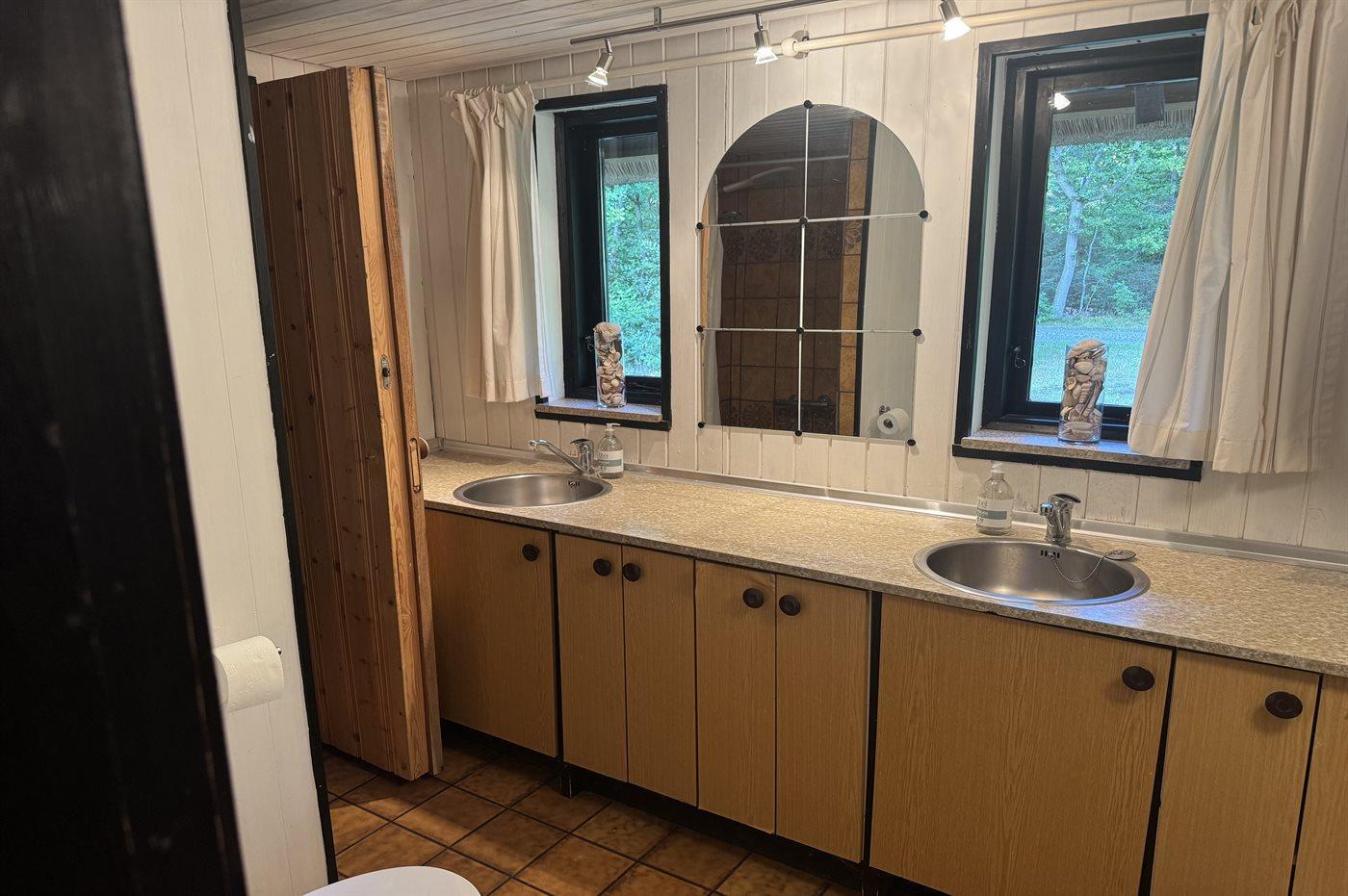 Der er 1 badeværelse med bruseniche og 2 toiletter I saunaen er der mulighed for afslapning.
