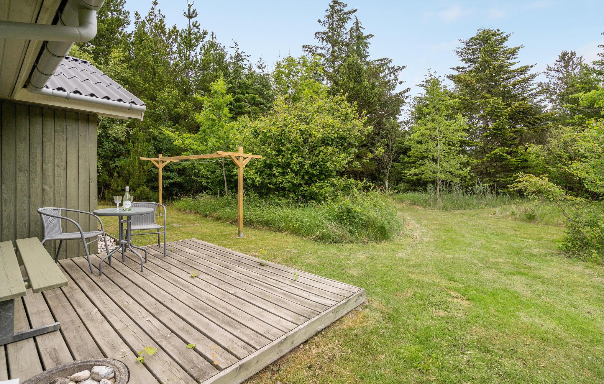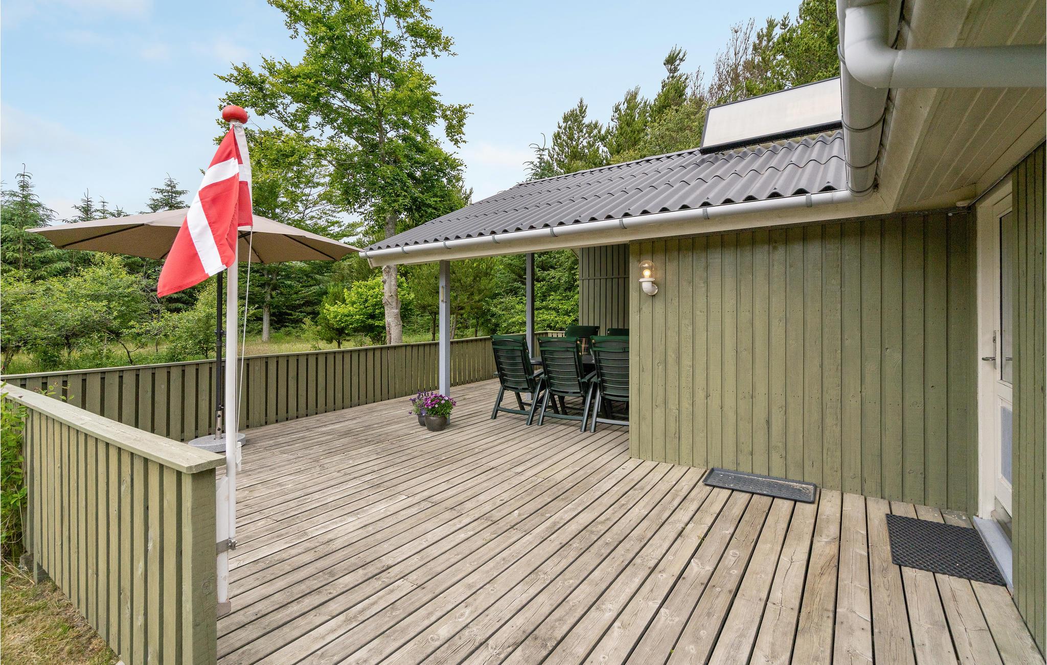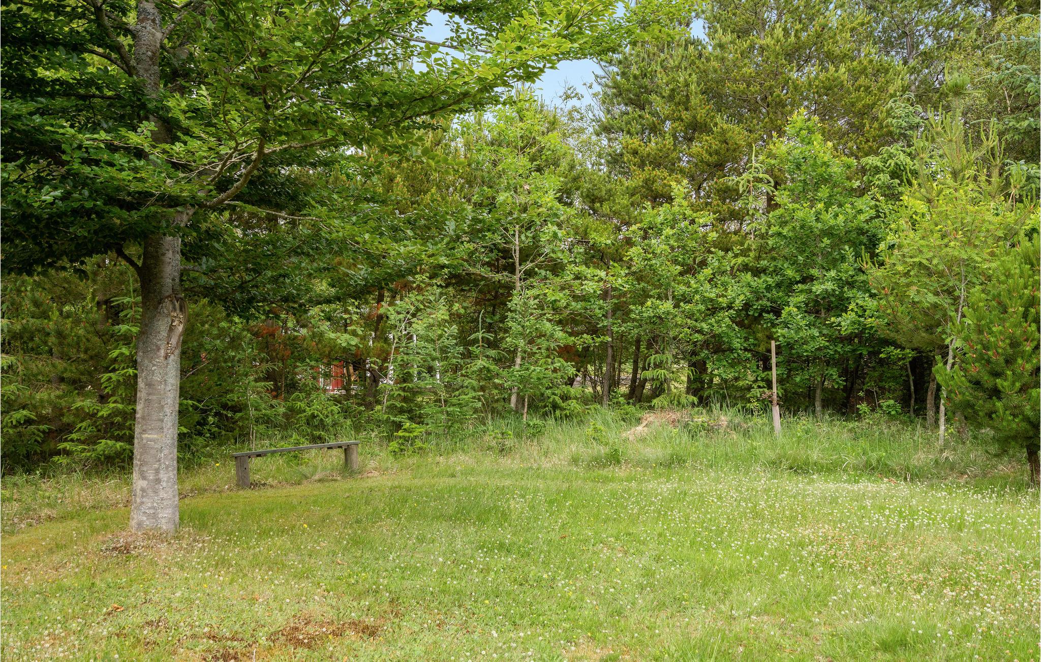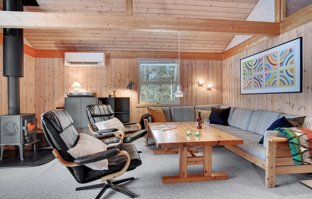 Velkommen til dette hyggelige sommerhus, hvor I vil nyde en masse fred og privatliv. Huset er lidt ældre, men i meget god stand. De veludstyrede rum er komfortabelt indrettet og fremstår velholdte og indbydende. Fra et af soveværelserne kan I ligge i sengen og nyde den smukke udsigt til skoven gennem gulv-til-loft-vinduet. Brændeovnen i stuen er også med til at skabe en hyggelig atmosfære. Der er desuden en varmepumpe for ekstra komfort.