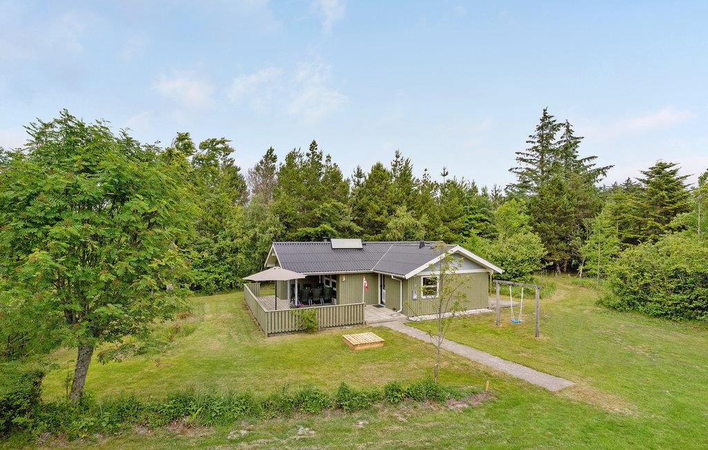 Hyggeligt sommerhus nær Rødhus Strand med smuk udsigt, brændeovn og overdækket terrasse for ro og privatliv.
