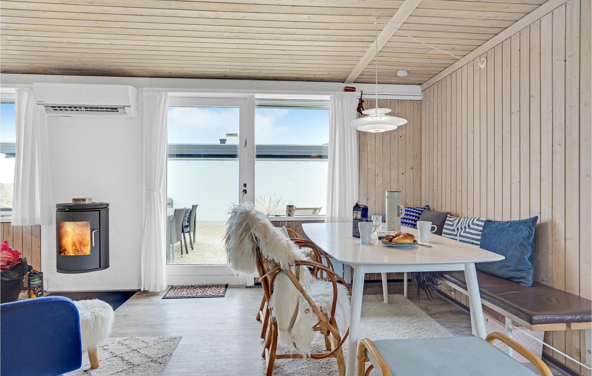 Huset er smagfuldt indrettet efter den tidløse farvekombination af træ/naturfarver og havblå. De store vinduespartier lukker masser af dagslys ind og giver et dejligt udsyn til klitterne. Foran huset er der en indhegnet gårdhave, beskyttet mod indsyn, hvor I kan solbade og slappe dejligt af. Om aftenen kan I grille og nyde en smuk solnedgang omkring bålet, mens I lytter til det brusende Vesterhav.