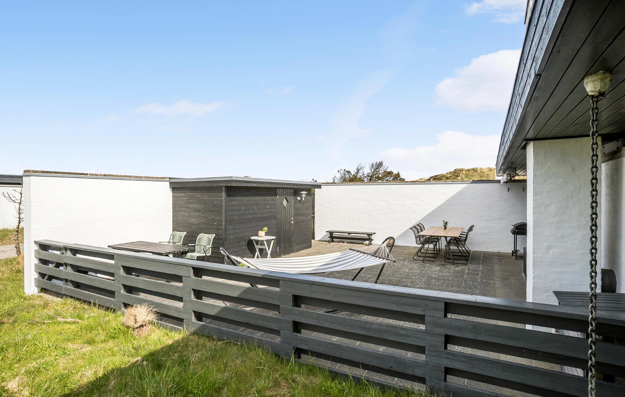 Ophold jer i den beskyttede gårdhave, hvor I altid kan finde en plads i solen eller i skyggen. Slap af i hængekøjen, nyd udsigten til klitterne, og lyt til havets brusen i baggrunden. Spis på den store terrasse med grill, eller afslut dagen med et glas vin under åben himmel.