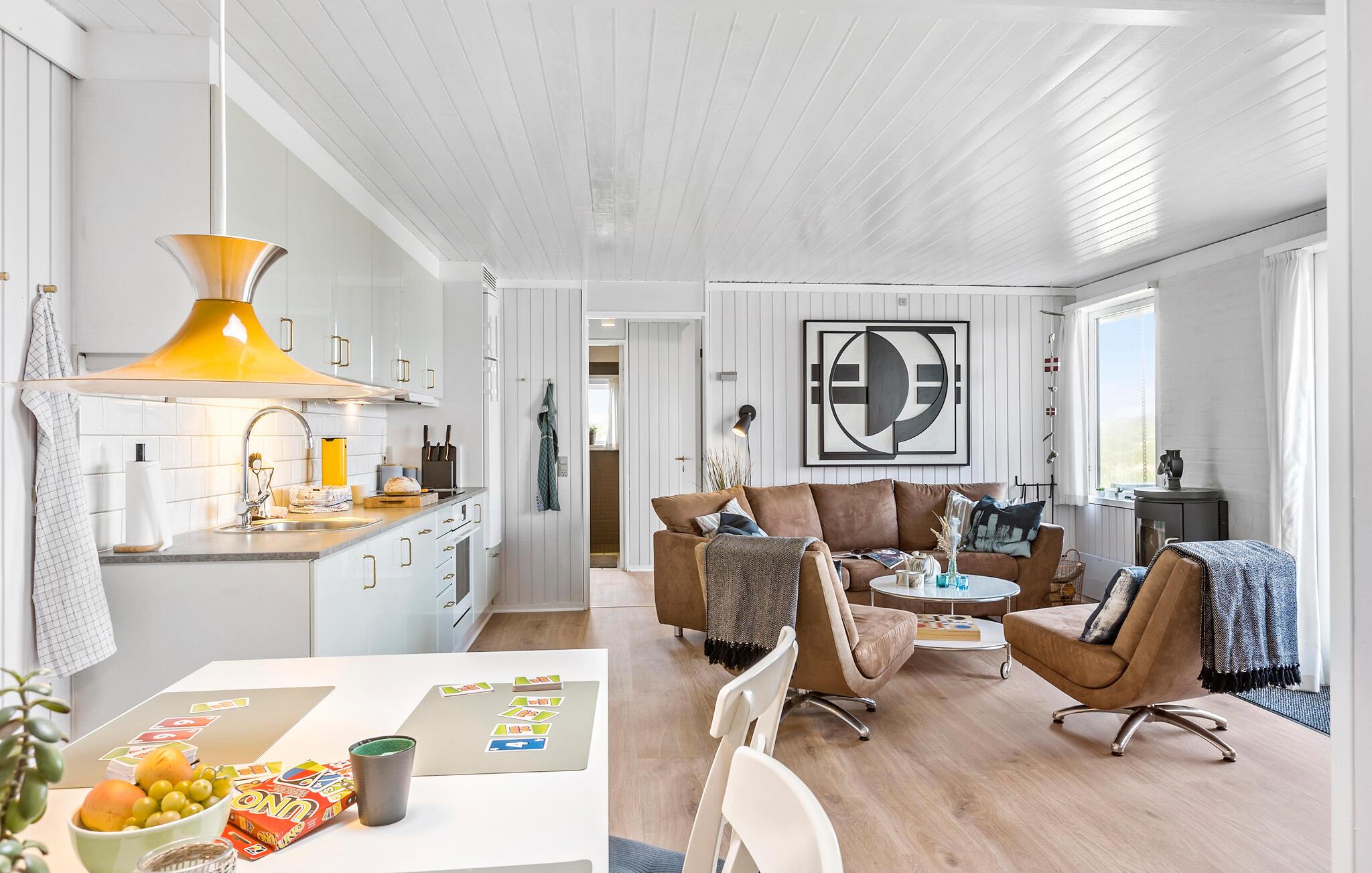 Nyd jeres ferie i dette feriehus, der byder på rene linjer, lyse rum og en afslappet atmosfære. Oplev naturens ro, og læg hverdagen bag jer. Træd ind i den smagfuldt indrettede opholdsstue. Slap af i den behagelige sofa, lad blikket vandre gennem de store vinduer ud over klitterne, og mærk den hyggelige varme fra brændeovnen. Brug det veludstyrede køkken til fælles måltider, og tag plads i den hyggelige spisestue, som er ideel til lange aftener.