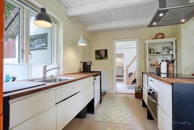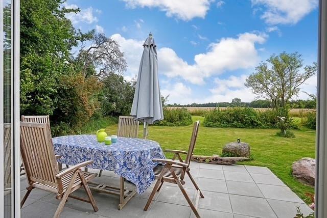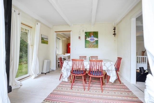 I den dejlige store have, kan I nyde de varme dage og lune aftner, og sidde på terrassen og nyde udsigten. Er der noget bedre end at sidde og opleve mørket og roen sænker sig, med et glas vin eller en god kop te eller kaffe? Her finder I både plads til hygge, afslapning og natureventyr. Fra huset har I kun 300 meter til havet for enden af vejen.