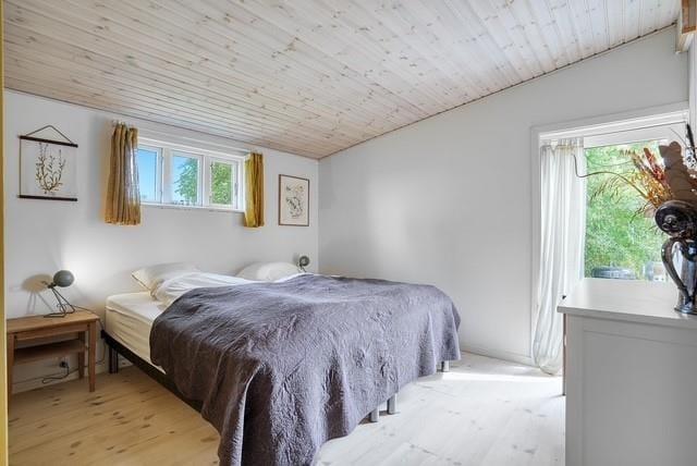 Her træder man ind i en dejlig entre/bryggers med vask, vaskemaskine og tørretumbler og så starter ferien. Stuen er hyggelig indrettet med streaming TV, gode møbler og brændeovn og herfra er der trappe til 1. sal. Fra stuen er der adgang til spisestue og begge er med udgang til terrassen via dobbelt terrassedør. I det hyggelige landkøkken kan I være sammen om at tilberede dagens måltider og her er også en lille hyggelig spiseplads, hvor man kan sidde og nyde morgenkaffen. Nyt badeværelse med bruseniche, toilet og håndvask, samt gulvvarme. I stueplan er der 1 soveværelse med dobbeltseng med direkte udgang til terrassen. På 1. sal er der et stort rum med 1 enkeltseng og 1 dobbeltseng, samt sofa. Fra 1. salen er der også adgang til en dejlig balkon med en skøn udsigt, hvor man kan sidde og nyde et glas vin.