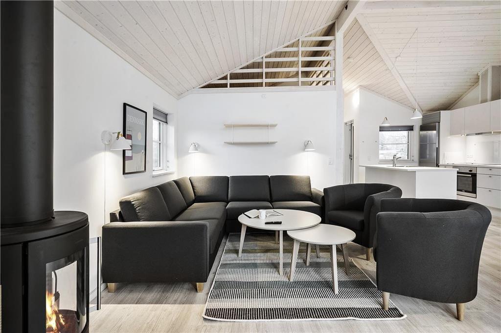 I stuen er der dejligt sofahjørne med hjørnesofa, sofaborde og lænestole. Spiseplads. TV og internet (Vær opmærksom på der kun er streaming). Fra stuen udgang til skøn, delvis over dækket vestvendt træterrasse med havemøbler. I forbindelse stuen er der en hyggelig alkove med 2 gode sovepladser. Brændeovn og varmepumpe i stuen.