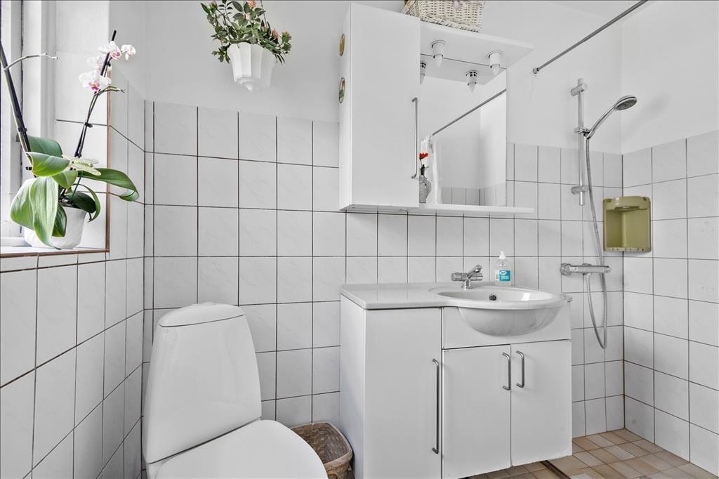 Huset indeholder: Entre, badeværelse med bruseniche, toilet og håndvask.
