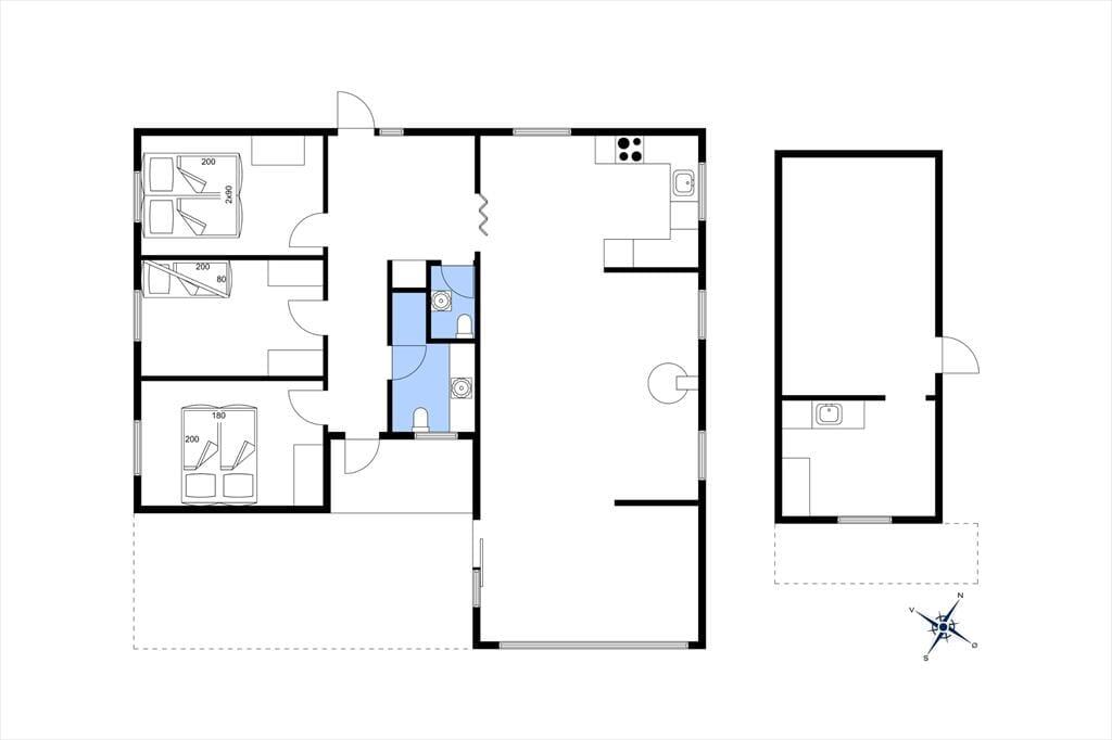 1 værelse med 2 x 2 køjer, og 2 dobbelte skabe.
