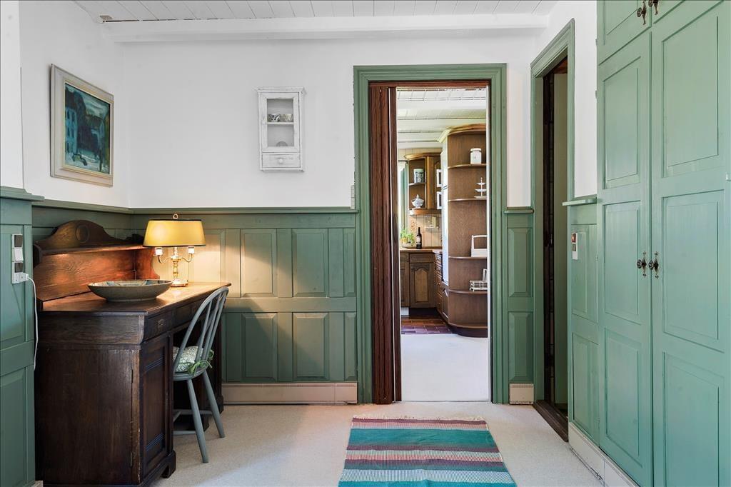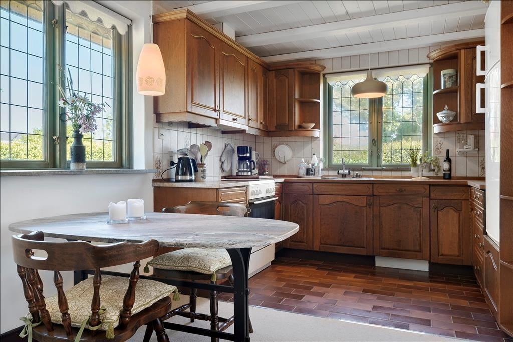 Køkkenet indeholder: Elkomfur med 4 kogeplader og ovn, emhætte, køleskab, fryser, opvaskemaskine, kaffemaskine, elkedel, samt alt øvrigt service og køkkengrej.