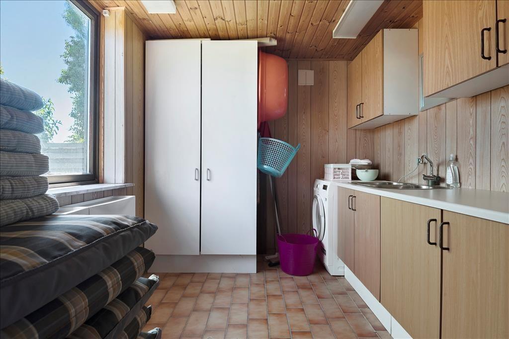 Vaskerum i forbindelse med aktivitetsrum. Vaskemaskine og tørretumbler og ekstra køl/fryseskab.