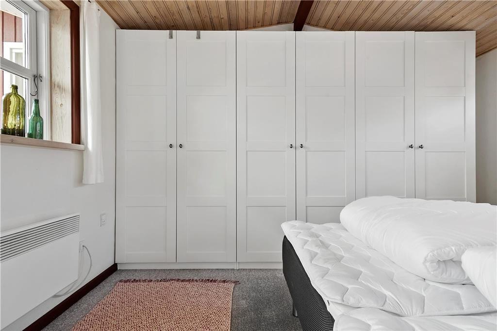 1 pænt værelse med 1 dobbeltseng og skabsvæg.
