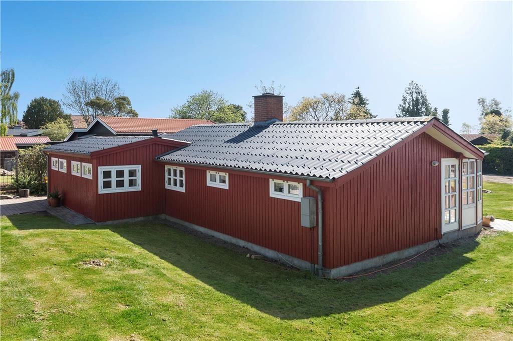 Dejlig lukket grund med carport, bålsted og fint shelter, hvor man kan ligge og nyde aftensolen og en god nats søvn i den frie og friske stevnske natur. Gode havemøbler. God plads til leg med børnene græsplænen. Et super dejligt hus til en rigtig hyggelig familieferie – eller bare en hyggelig parferie med en god bog og benene oppe for total afslapning – væk fra dagens stress og jag.