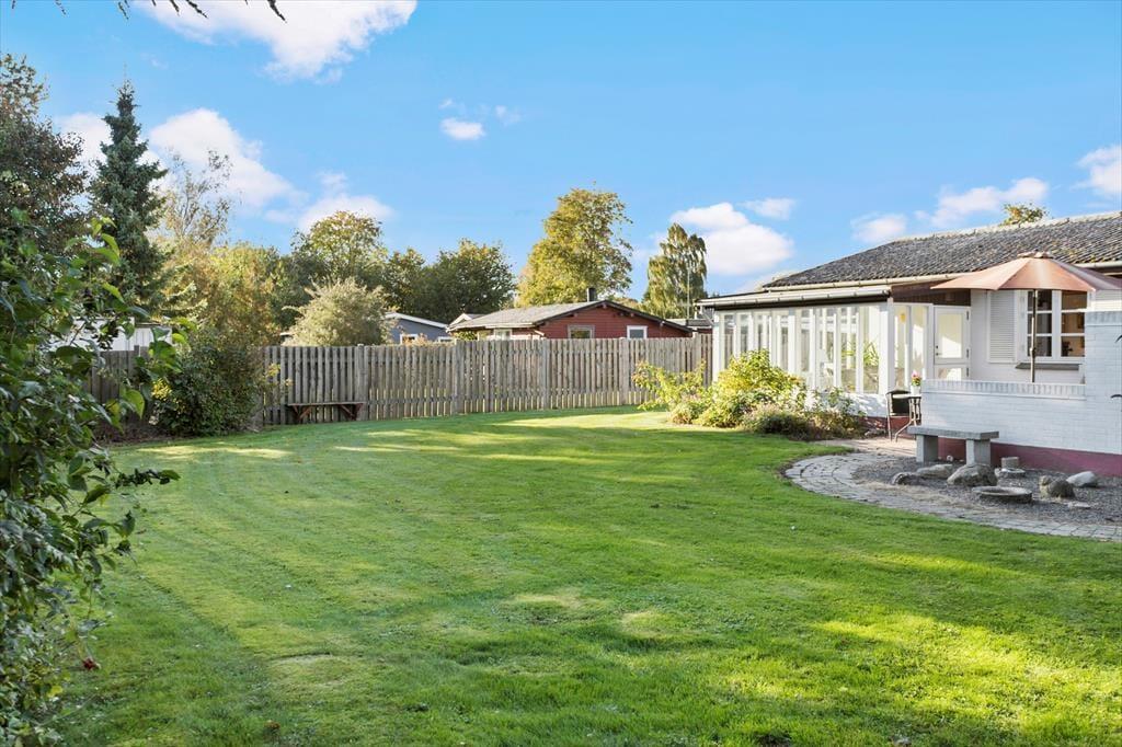 Kun 150 m til Rødvigs dejlige badestrand. Stor hyggelig delvis lukket have med afskærmet terrasse.