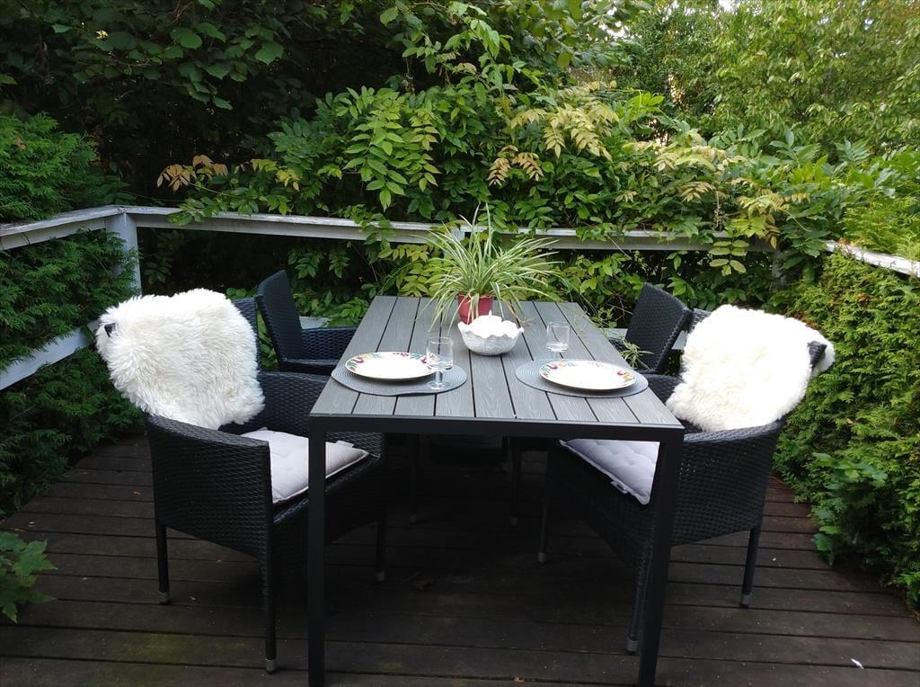 I den dejlige lukkede have, kan I nyde de lune dage. Hvis aftenerne bliver kølige, kan du og familien trække ind under den overdækkede terrasse og er der noget bedre end at sidde og nyde mørket og roen med et glas vin eller en god kop te eller kaffe? Her finder I både plads til hygge, afslapning og natureventyr. Fra huset har I kun 150 meter til en børnevenlige strand eller en lille gåtur til Rødvigs hyggelige havn.