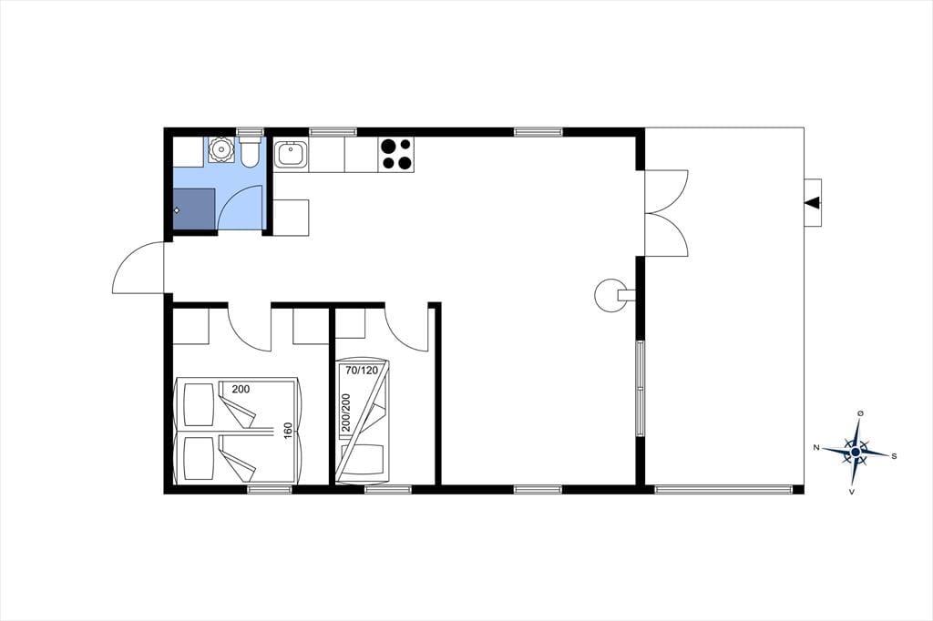 Fra stuen er der adgang til et værelse mere, her er der en køjeseng med plads til 2 forneden (smal) og 1 foroven.